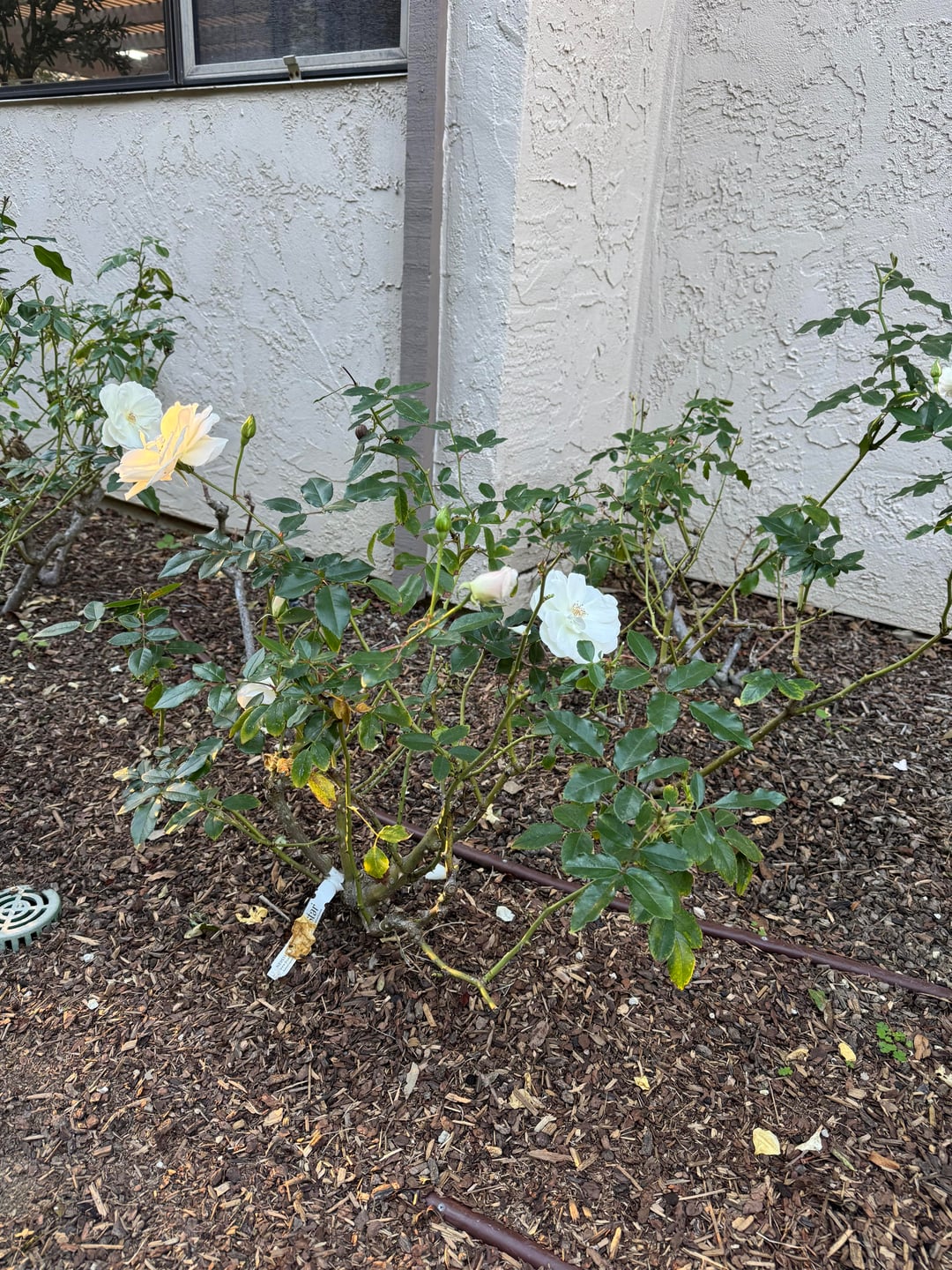 バラの育て方についてアドバイスを求めています。 1年前にこの家に引っ越してきたときにこのバラの木を譲り受けたので、今年の春がバラの世話をするのは初めてです。