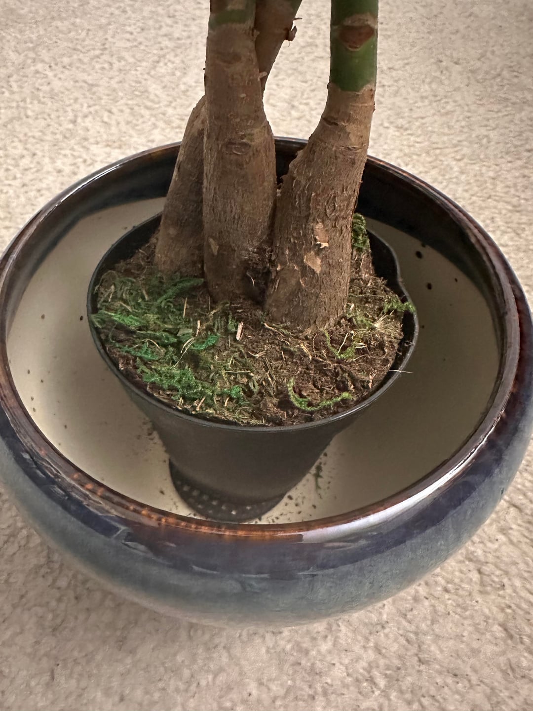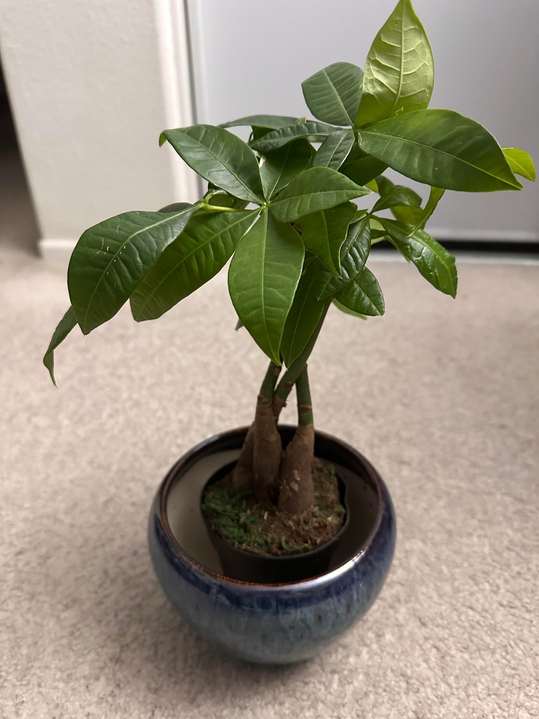 健康食品の食料品店で金のなる木を購入しましたが、その苗床は排水もされていない悲しい窮屈な鉢に押し込まれていました。植え替えがストレスになりすぎないかどうかも気になりますが、この鉢の大きさが十分かどうかも気になります。室内用の培養土も購入して追加しました。 私は南カリフォルニアに住んでいますが、天気は厳密には「冬」ではないので、毎週水を与えるべきかどうか迷っています。今週はそれを簡単に購入しました。頂上に新たな成長が見えます。少量の水やりをしました。
