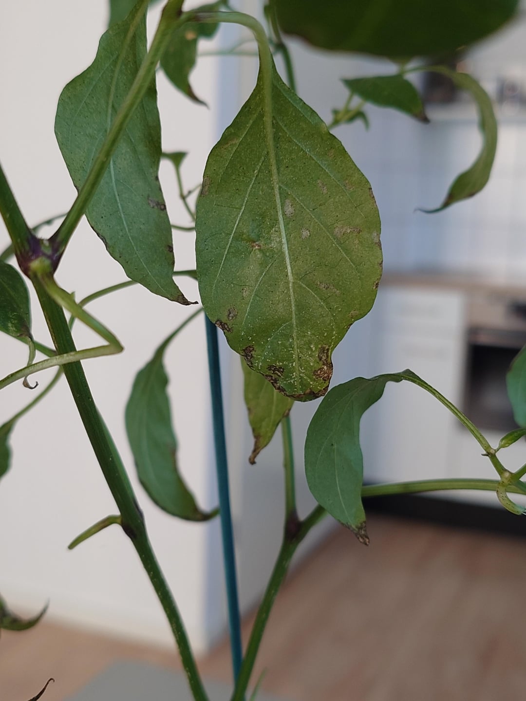 これが私の最初の投稿です (助けを求める最後の投稿になることを願っています。成功談を投稿したいと思っています (笑))。去年の夏、種から唐辛子を育てたのですが、とてもうまくいきました。捕食者を使って処理した他のいくつかの植物にはダニが寄生していましたが、他の植物は良くなりましたが、最近、唐辛子の状態が悪化しているようです。ほとんど十分な水を与えているにもかかわらず、葉が垂れ下がって丸まっていて(私は水のやりすぎはしませんが、時々少し乾燥させてしまうことがあります、おっと)、水を加えても変化はありません。また、葉には銀色の斑点と小さな黒い点があり、そのうちの1つは黒い縁も付いています。私のポトスの挿し木にも銀色の斑点ができましたが、ありがたいことに他の植物は免れているようです。
