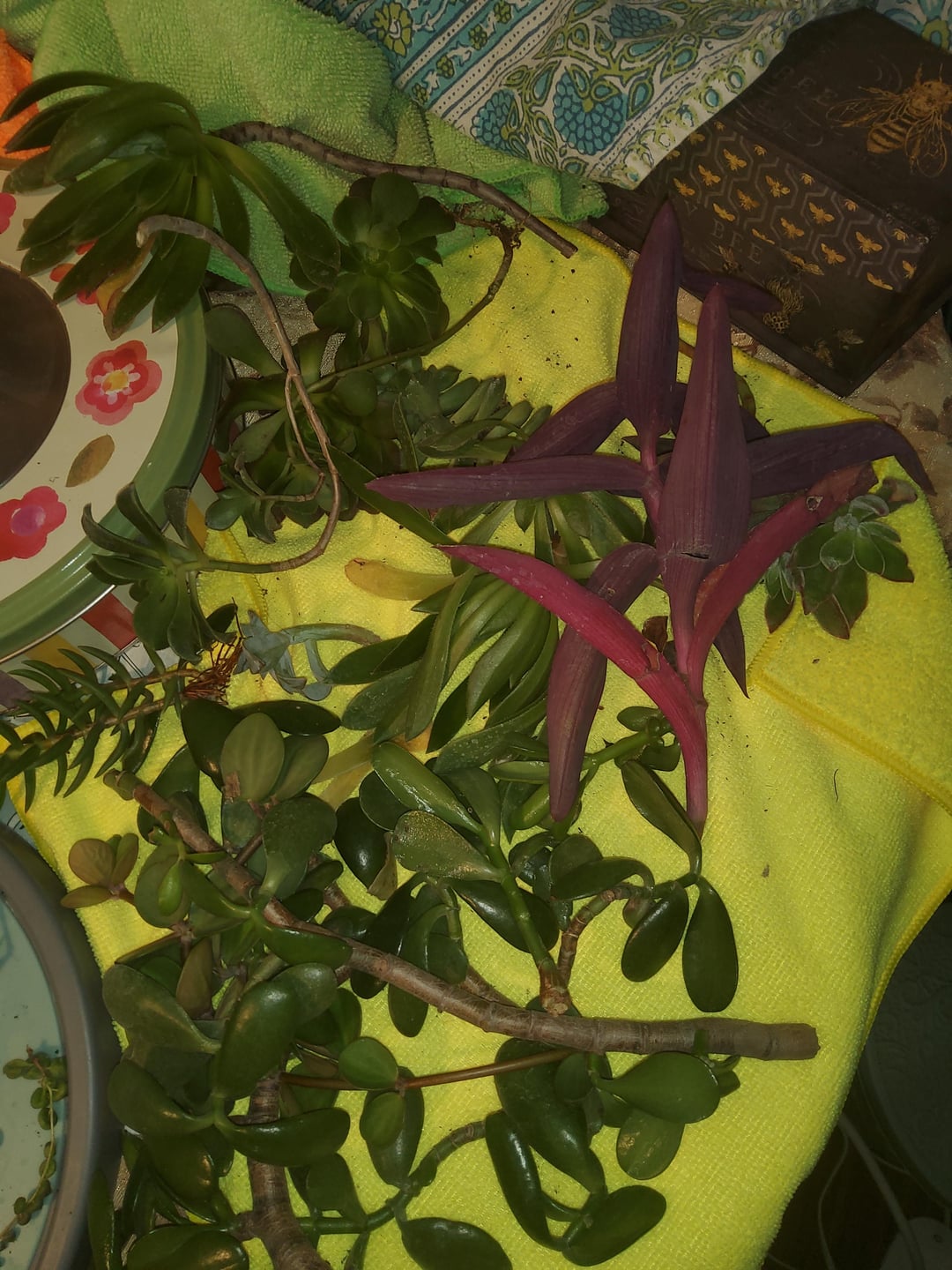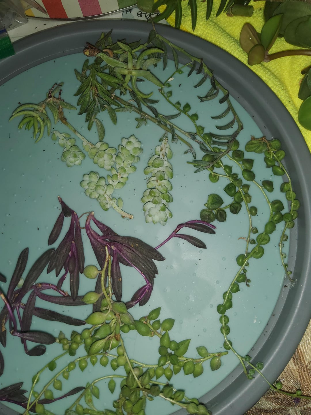 親愛なる友人を訪ねて、大きな植物を持って帰ってきたところです。 彼女は私に彼女のお気に入りを見せてくれました、そして私は他のものよりもいくつかを賞賛しました。 私のお気に入りは 1.「パール」と呼ばれる多肉植物です。 彼女にはいくつかのタイプがあります。 小さな緑色のチョコレートが紐の上に落ちているように見えます。 b. 糸につながれた小さなイルカのように見えます。 c 文字列に涙が落ちる。 d. 紐についた赤い葉っぱが素敵です。 e. 葉の束が寄り添い、娘の別々のカールがポニーテールから跳ねて跳ねていたことを思い出させます。 の挿し木もくれました。 小さなモンステラ、ジェイド、2色の緑の葉と水の中で絡み合った根のボール、そしていくつかの花の形をした多肉植物を持つ植物。 彼女はただ「特別なサプライズがあるよ、家に帰るまで見ないでね!」とだけ言いました。 彼女はウインクしながら私の腕にバッグを押し付けたので、私が何をすべきか知っていると思ったと思いますが、私は知りません! 次に何をすべきかについての正しいアドバイスを得るのに最適な場所はどこですか?
