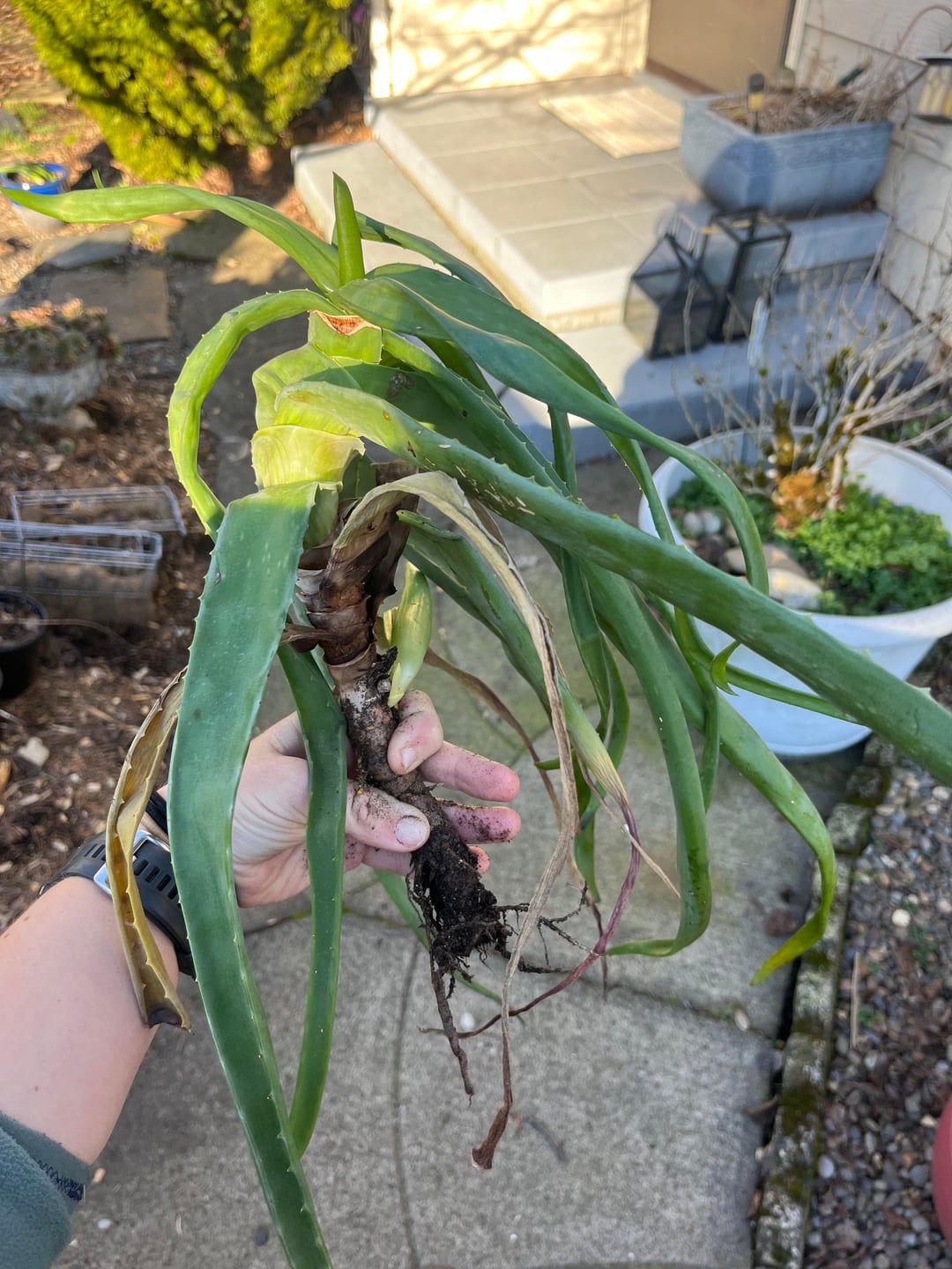 この夏、母は私が長年育ててきたアロエを手入れもせずに見守ってくれました。それを救うために私ができることはありますか、それともそれは去ってしまいますか?葉っぱが異様に平べったいんです。とても丸くて健康そうなアロエの子が大量に生まれました。 全体が垂れ下がっていて、葉はほとんどが平らで、前回植え替えのときに見た時よりも根系が小さいです。 (クロスポスト r/観葉植物 返信が 1 件しかなかったので、もっと意見が欲しいです)