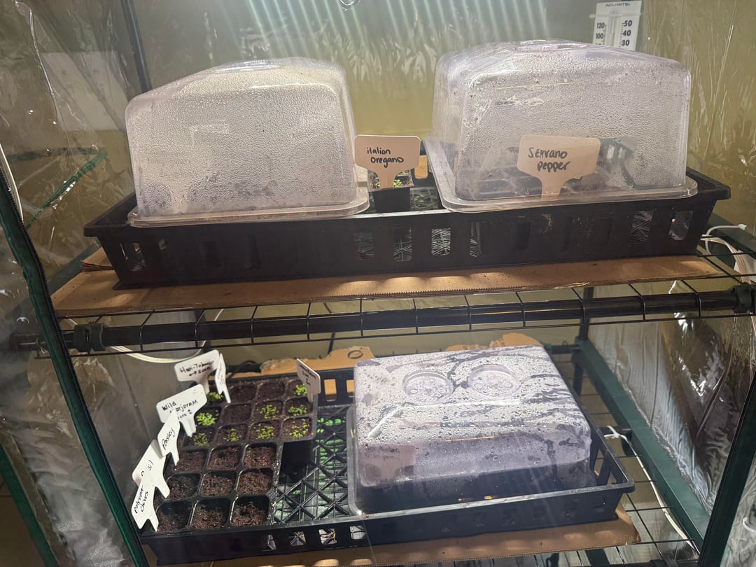 サーモスタットがないので、マットが熱すぎるかどうかはわかりませんか?あまり乾燥していないようですが、必要に応じて水やりや霧吹きをするだけです。細胞を入れた箱は、熱が直接当たらないようにするのに十分なバリアになっていますか?たくさんあるルドベキアの新芽を1つと、スパイクラベンダーも育てました。さらに発芽するかどうかを待ちたかったのですが、発芽したら湿度ドームから取り出す必要があるとも読みました。どうすればよいですか?