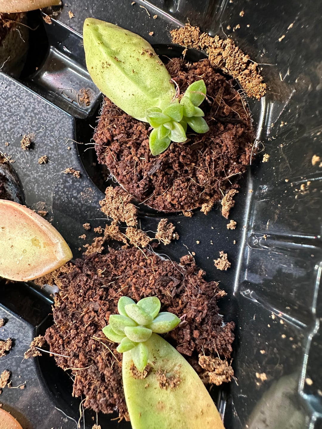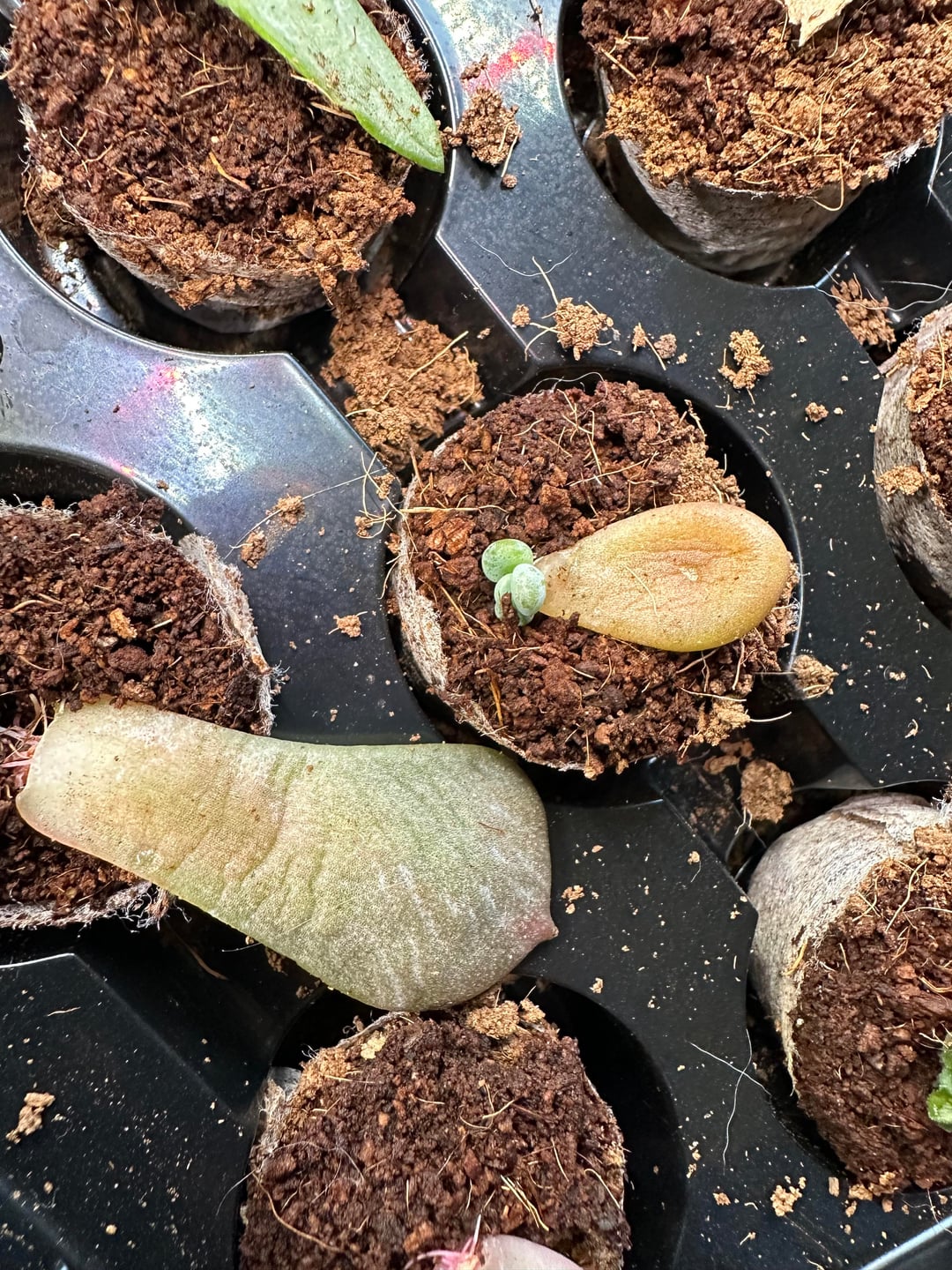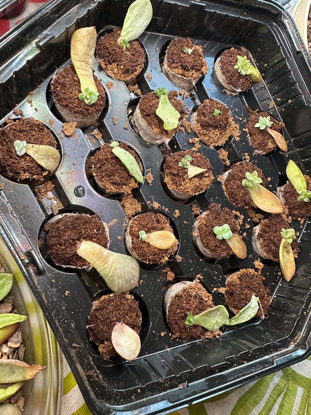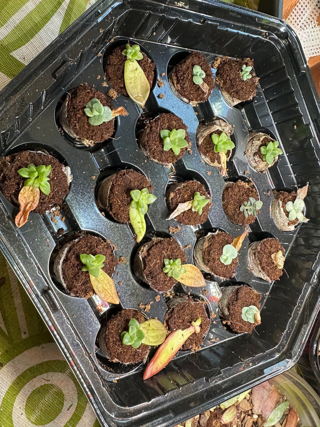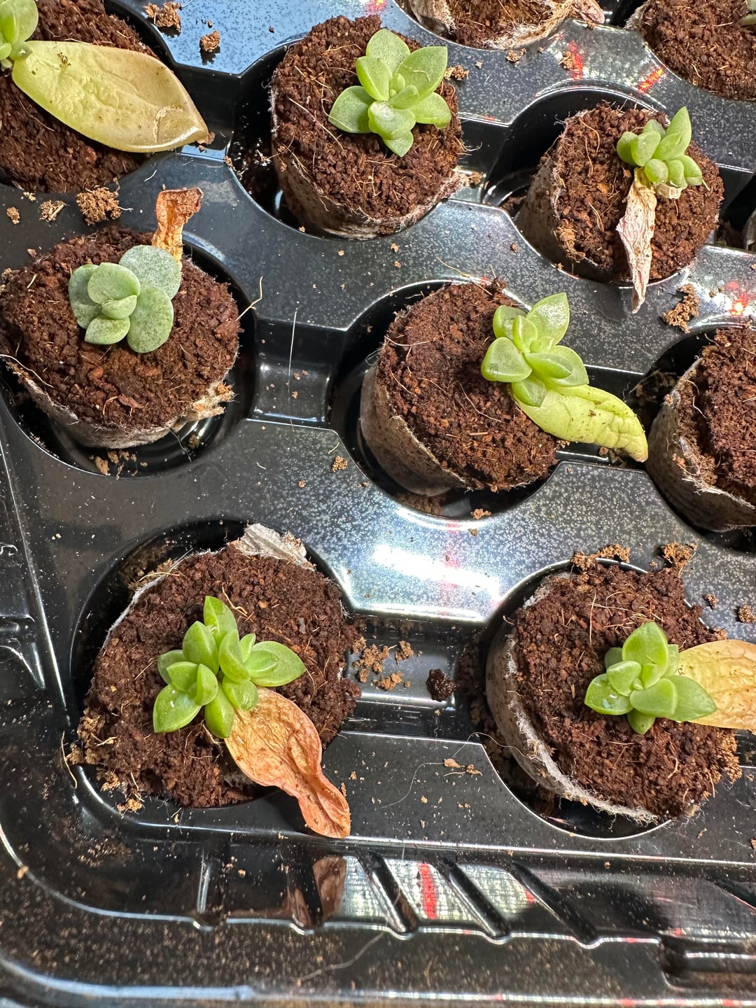 これらのプロップを開始してから約 90 日が経過しました。それらが大きな根系をもつほど大きく成長したら(または母葉が落ちて、植物が他の葉よりも頻繁に水やりを必要とする場合)、それらを土とコココイアが入ったスターターに移動します。トレイにはスターターに移動する必要があるものがいくつかありますが、スペースが不足しています。スターター トレイをさらに 2 ~ 3 個セットアップできるように、別のライトを注文したところです。