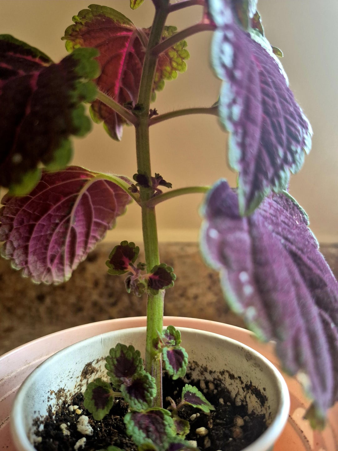 みなさん、こんにちは!息子は先生から美しいコリウスをもらいました。彼は興味を失ったので、今は私のものです。私は彼女を植え替えようとしています。ほとんどの場合、キッチンの窓からの朝日を愛していますが、新しい芽が生えるにつれて、下の大きな葉がすべてしおれて落ちていることに気づきました。エネルギーステッカーを切り抜いたほうがいいでしょうか?多すぎますか?どのような提案も素晴らしいです。ありがとう。