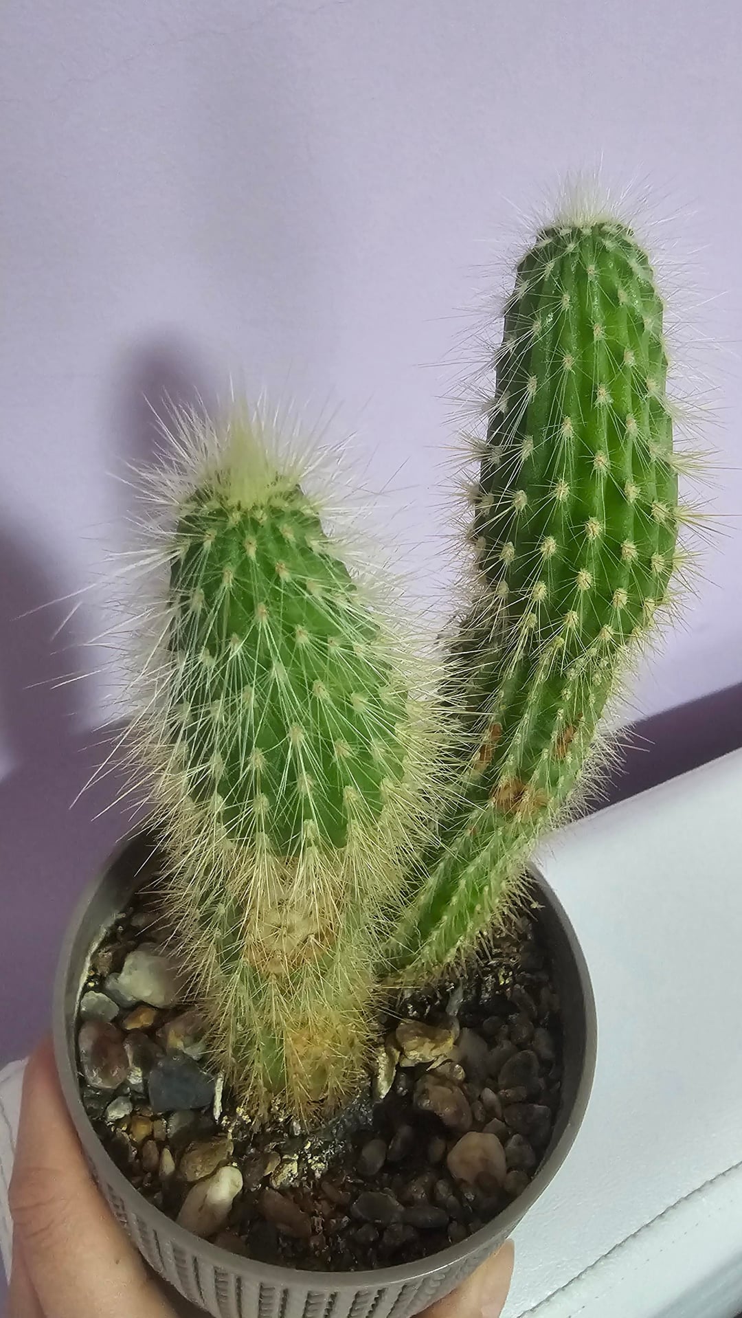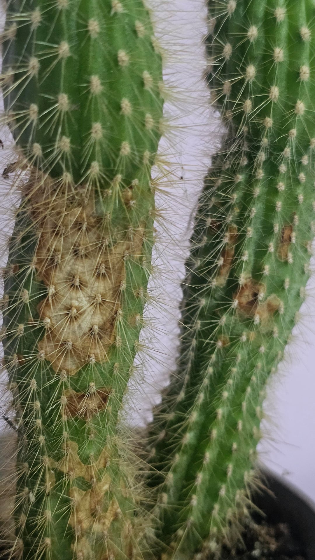 やあみんな! このサボテンについてアドバイスが必要です。 あなたはそれをそのままにするか、より大きな鉢に植え替えるか、それとも 2 つの小さな鉢に分けますか? また、長い間花が咲いていませんが、その理由は何か分かりますか? あと、日焼けして見える部分はどうすればいいでしょうか? 前もって感謝します!