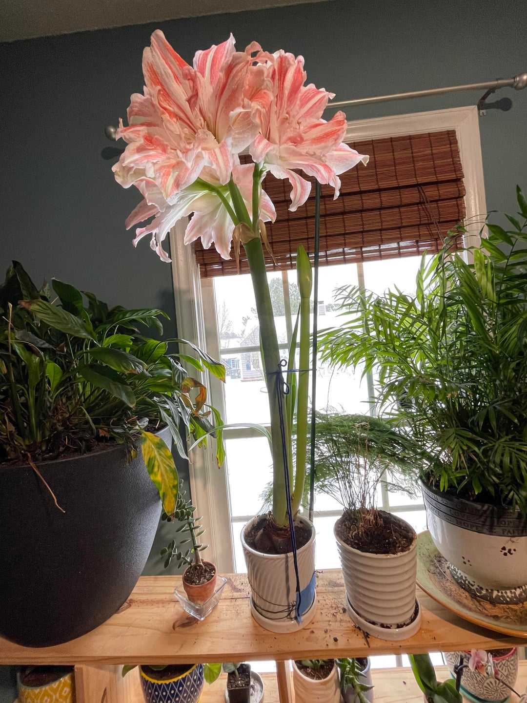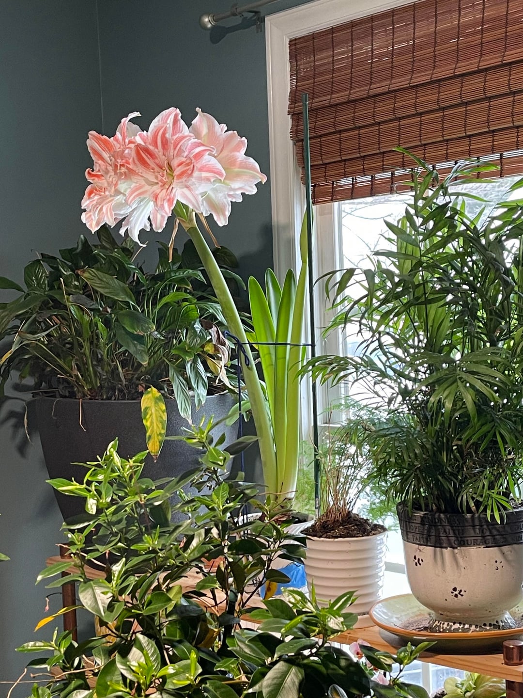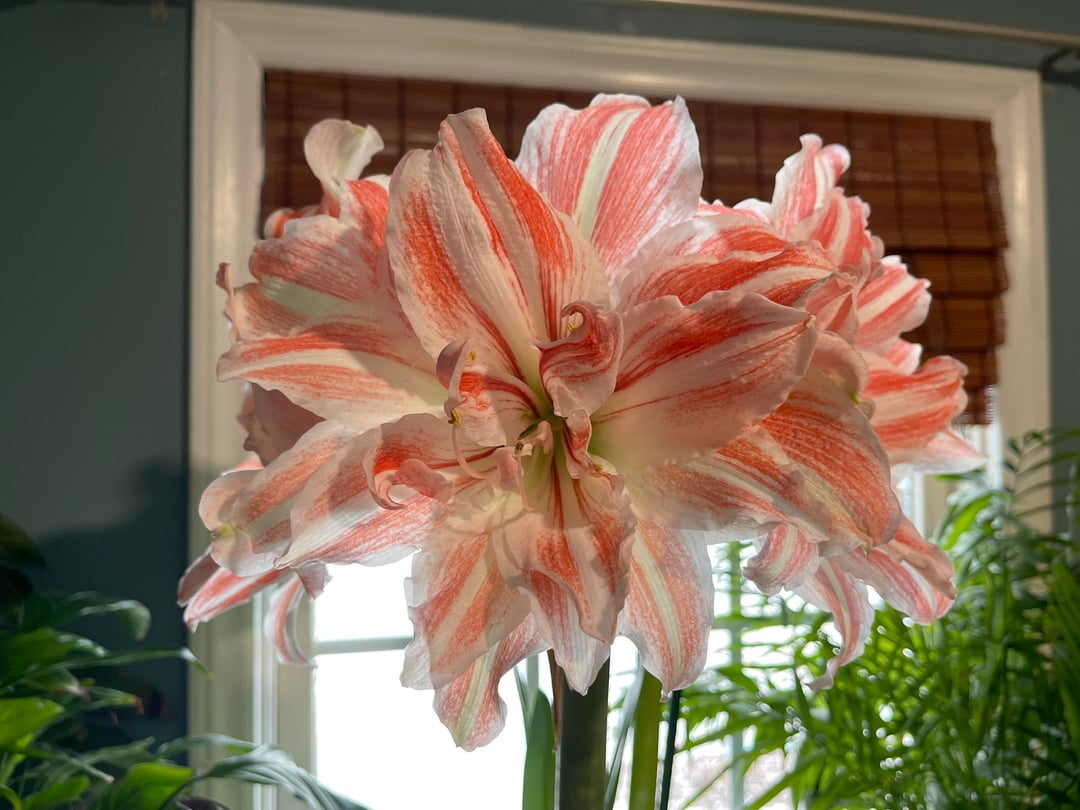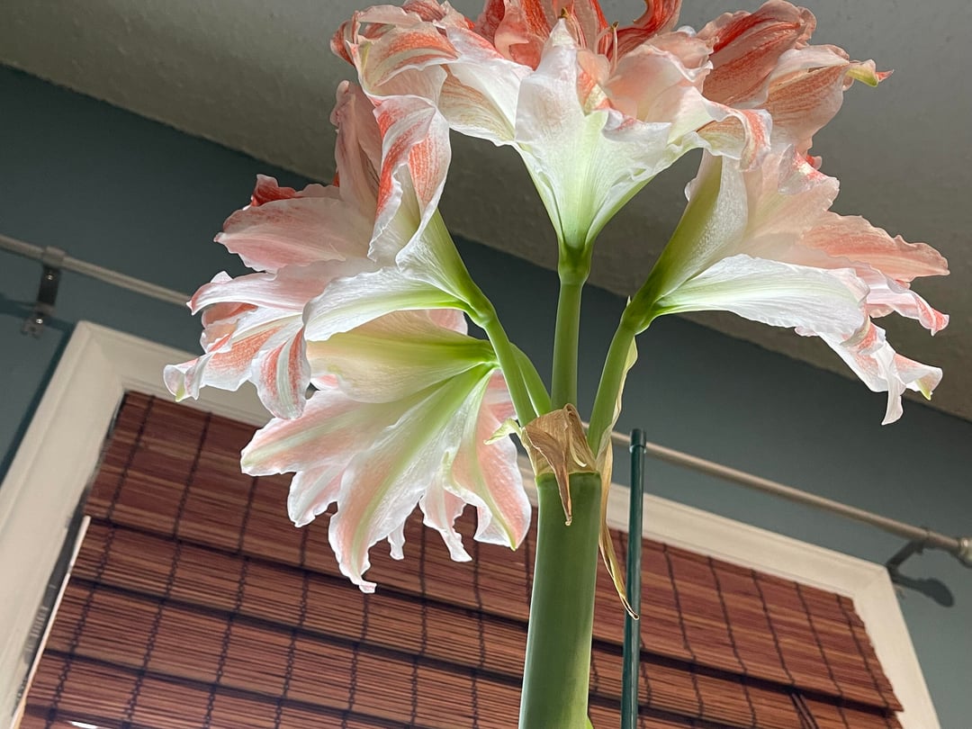 そして、彼女はなんと誇示的なのでしょう。 「ダンシングクイーン・アマリリス」なのでアビーと名付けました。 2本目の花茎が出てきているのに注目してください!