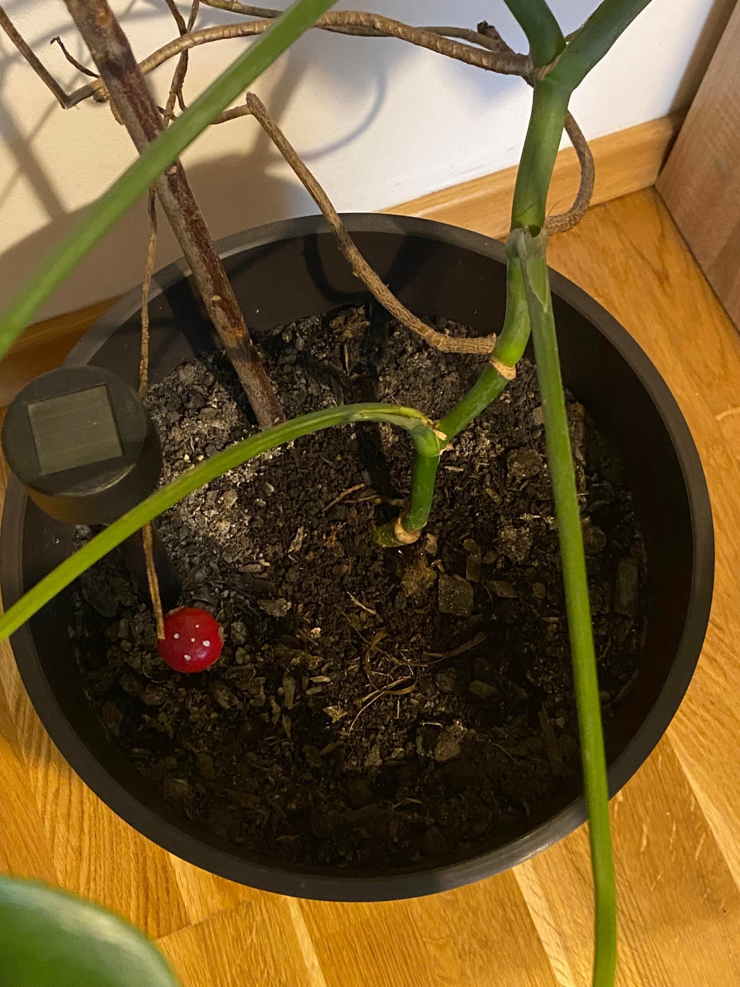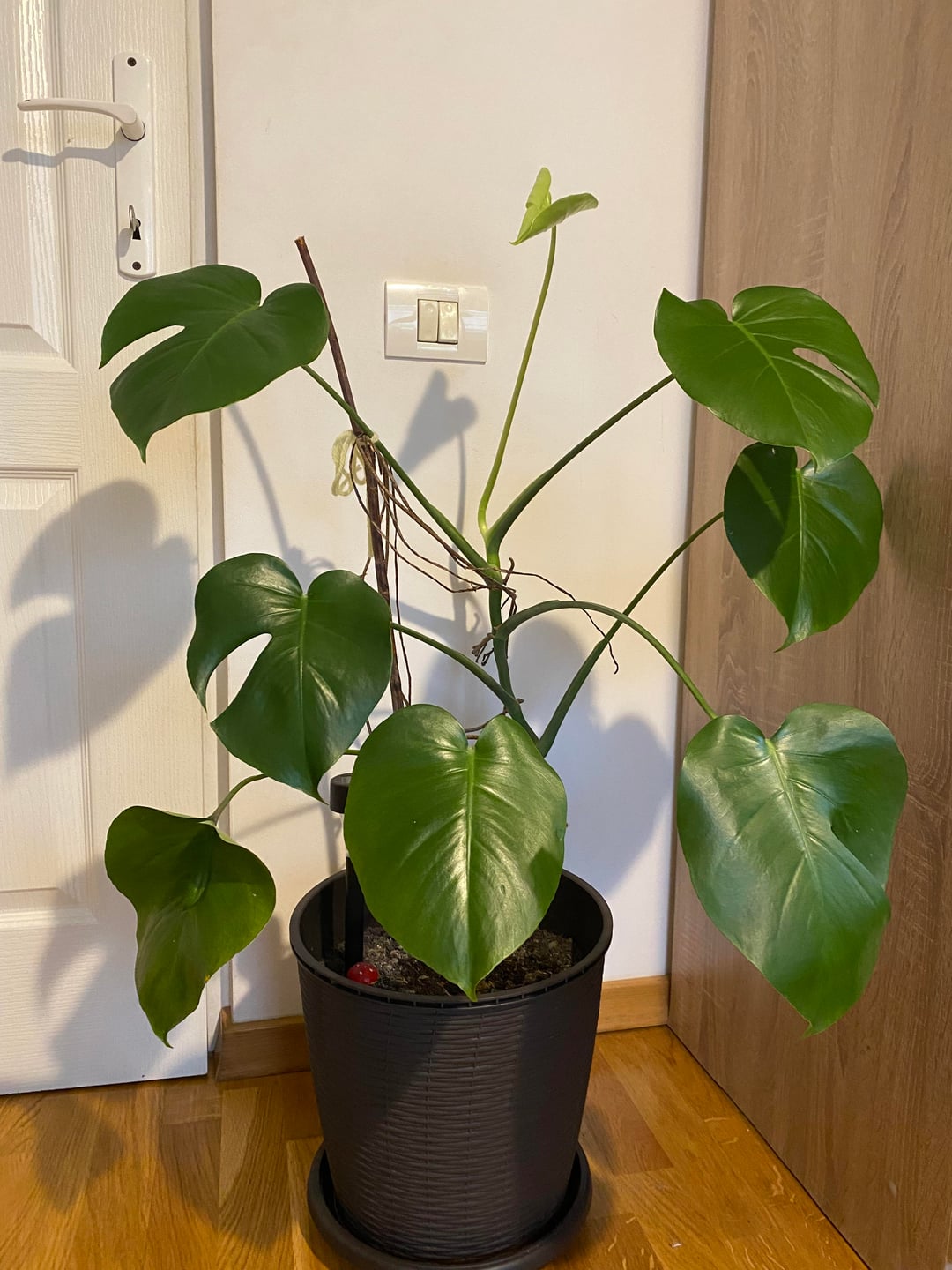 ネットで苔ポール(90cm)を注文したのですが、どこに置くのがベストですか??そして、土の中に置いた後、そこに放置してモンステラが登るのを待つべきですか、それともモンステラを土に結び付けますか?