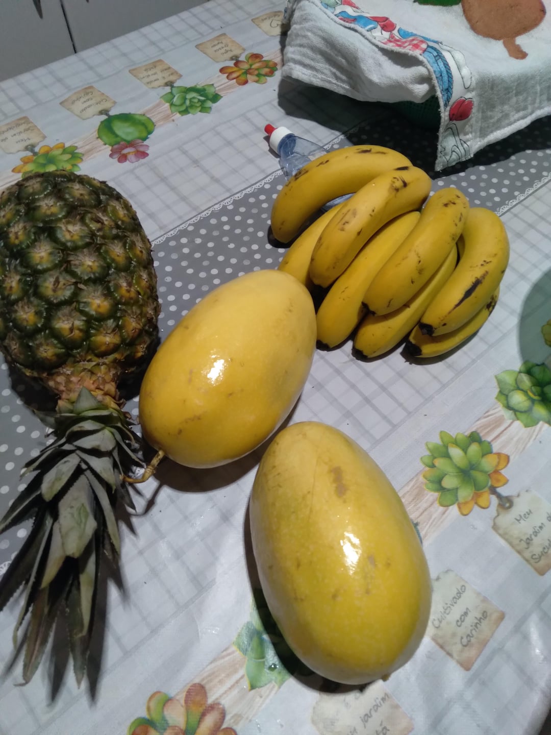 ハヤトウリ、マキシース (野菜のスイートガム) バナナ、パイナップル、ブドウ、ニンジン