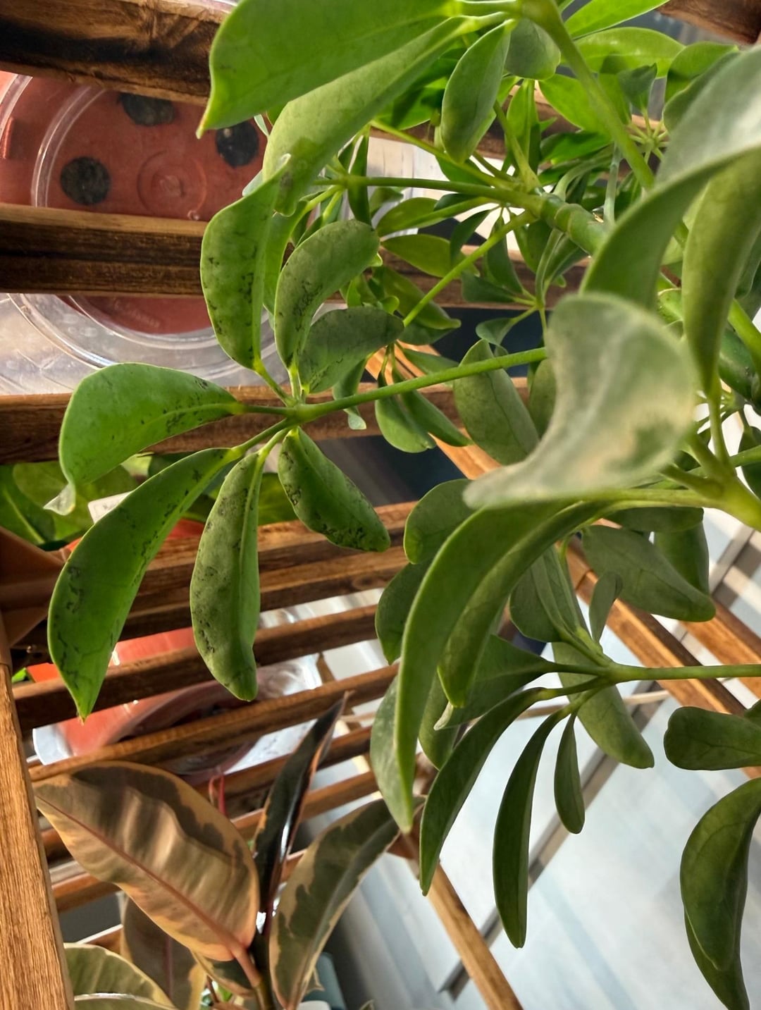 こんにちは、この植物の葉の下に茶色の斑点がありますが、それは葉の1つの塊の上にのみあるので、誰か私に何か洞察できる人はいないだろうかと思います!!