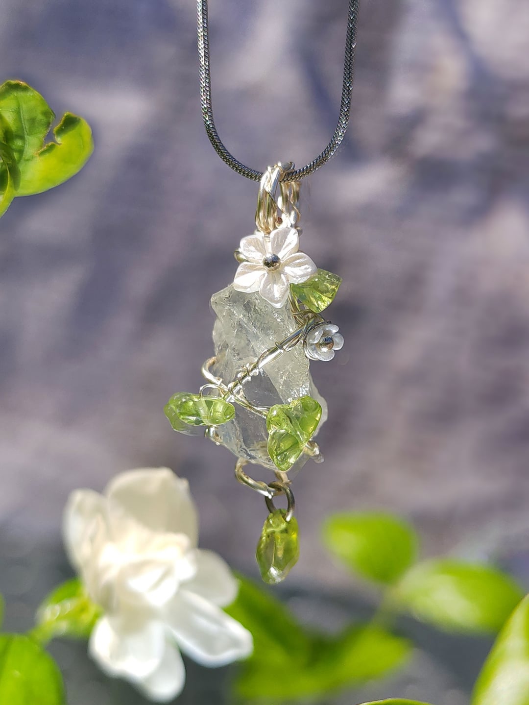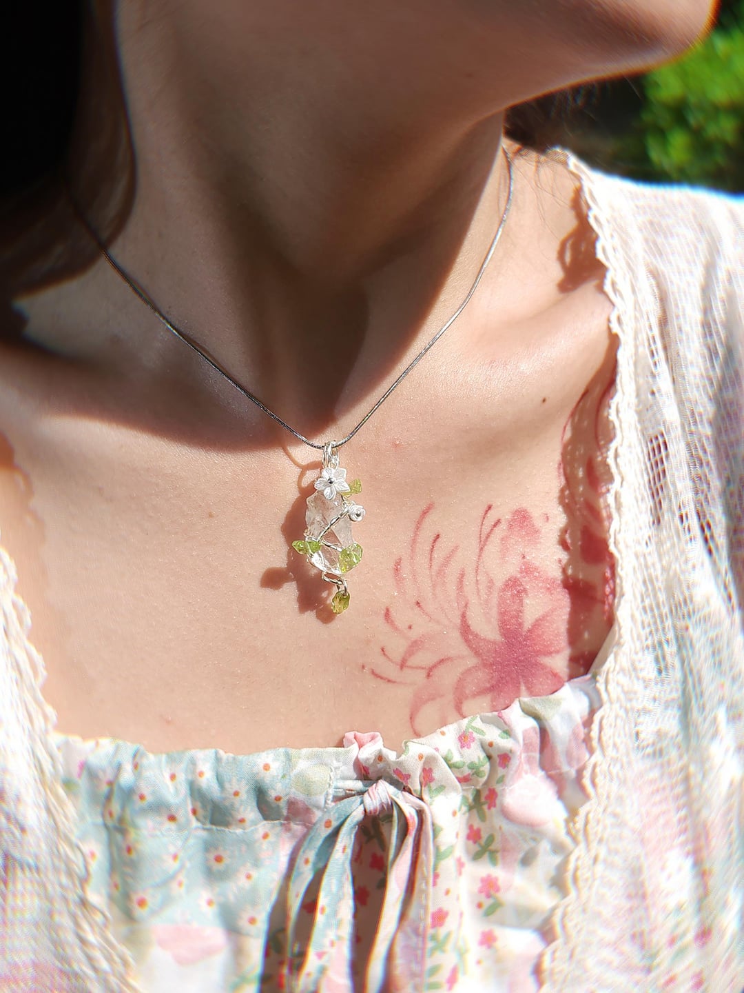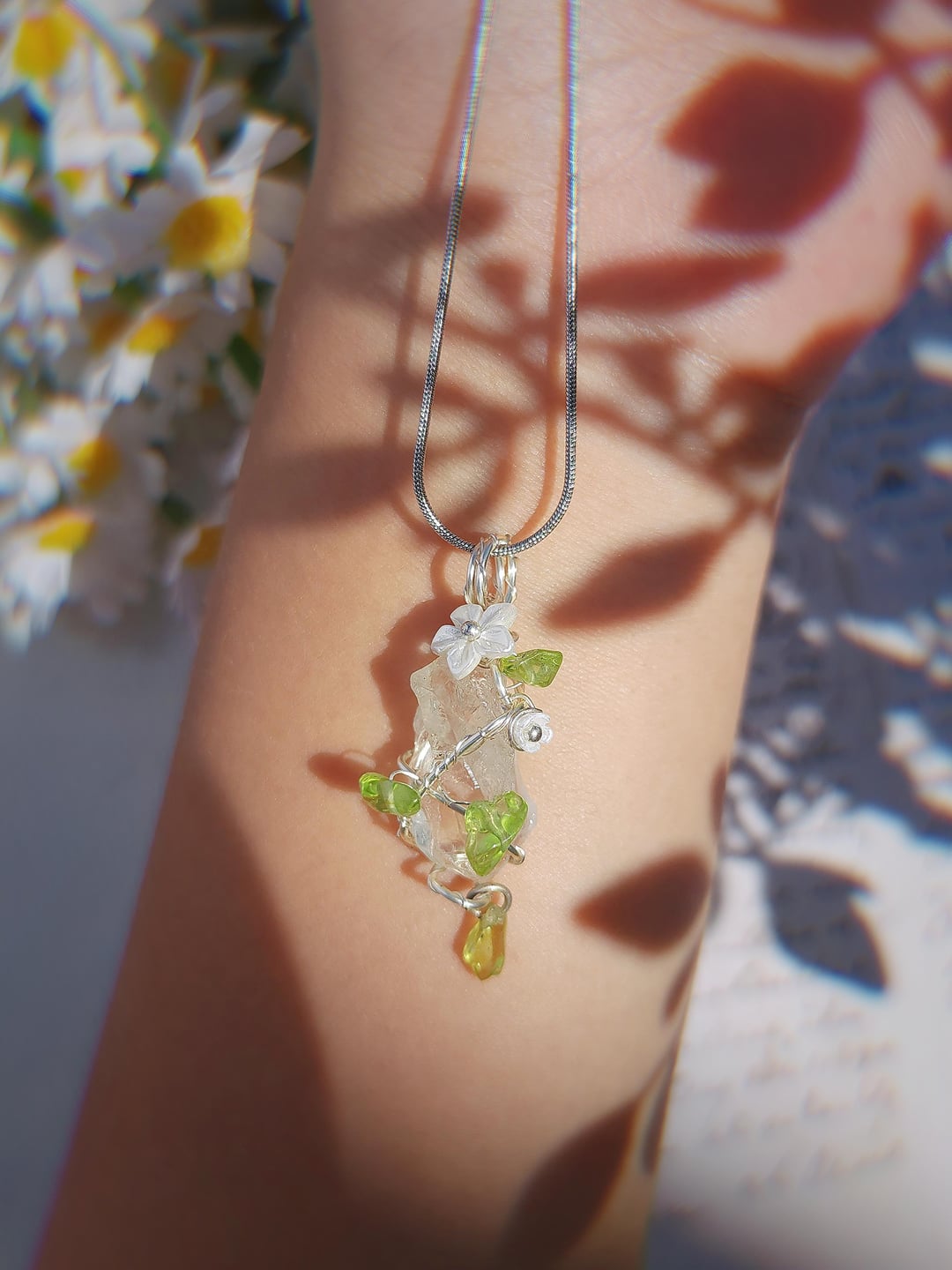 開花したジャスミンの記憶からこのクリスタル ジャスミン ペンダントがインスピレーションを得ました。