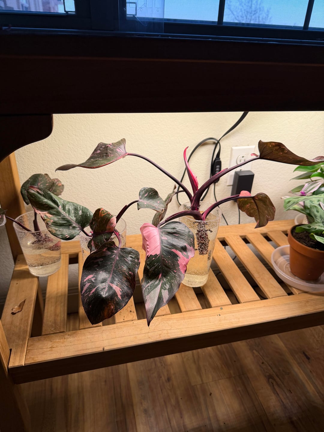 私はウォルマートで見つけた PPP を修復しようとしています (3 つの植物であることが判明し、現在はすべて専用の水カップに入れられています)。私が購入したとき、それらは基本的に泥の中に座っていました。植え替えをしましたが、根腐れが多かったので根を全て切り落として水にさらしました。