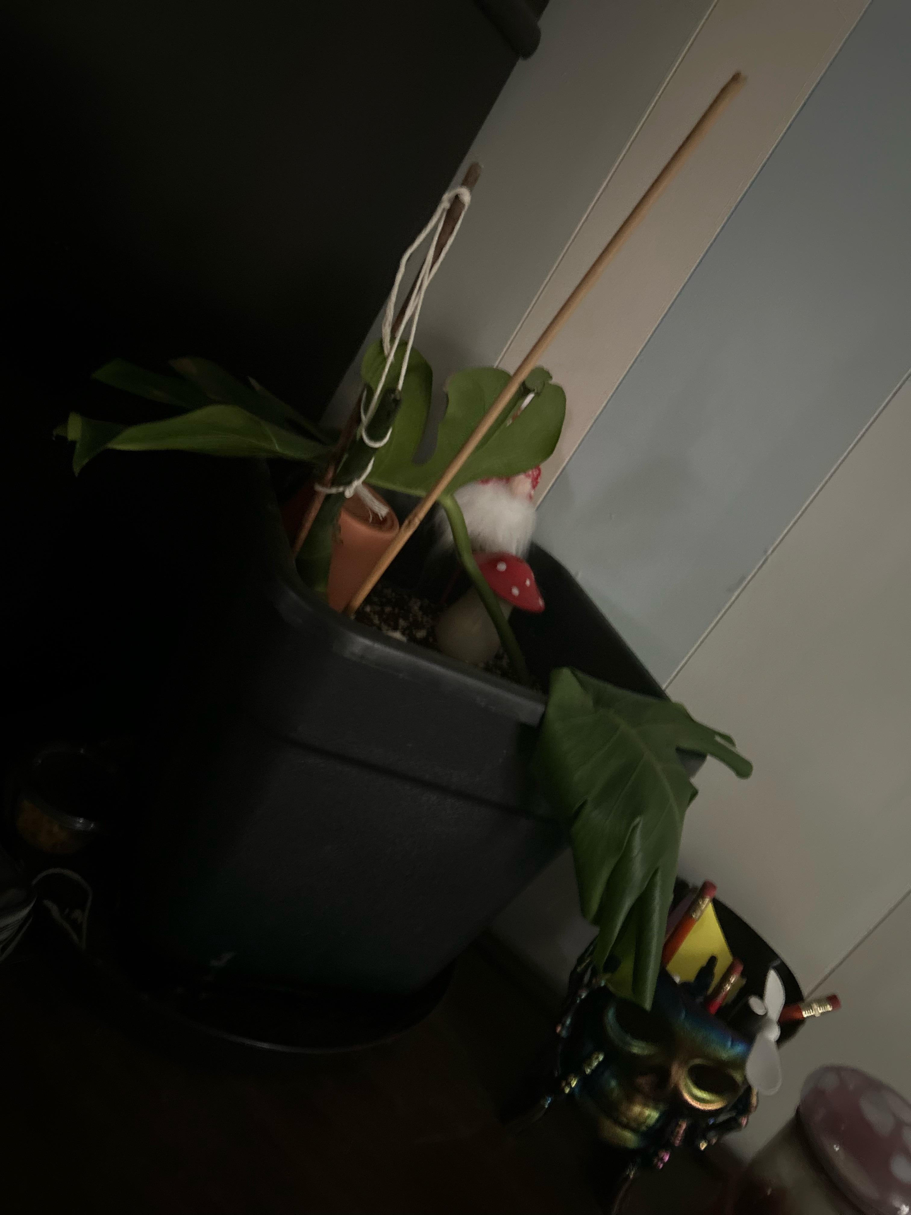 義理の兄が出張中で、彼の猫がモンステラの中に侵入してしまい、とても落ち込んでおり、ここ数か月間大変な日々を過ごしていました(ペットロス、自動車事故、失業期間)。義理の兄はこのモンステラを3年近く飼っています。もともと切り株だったので、私はシルと協力して新しい植物を植えさせようと考えています。上の写真は元の場所を示していませんが、これは猫が到達できない一時的な場所であり、窓のそばに永続的な場所を確保します。