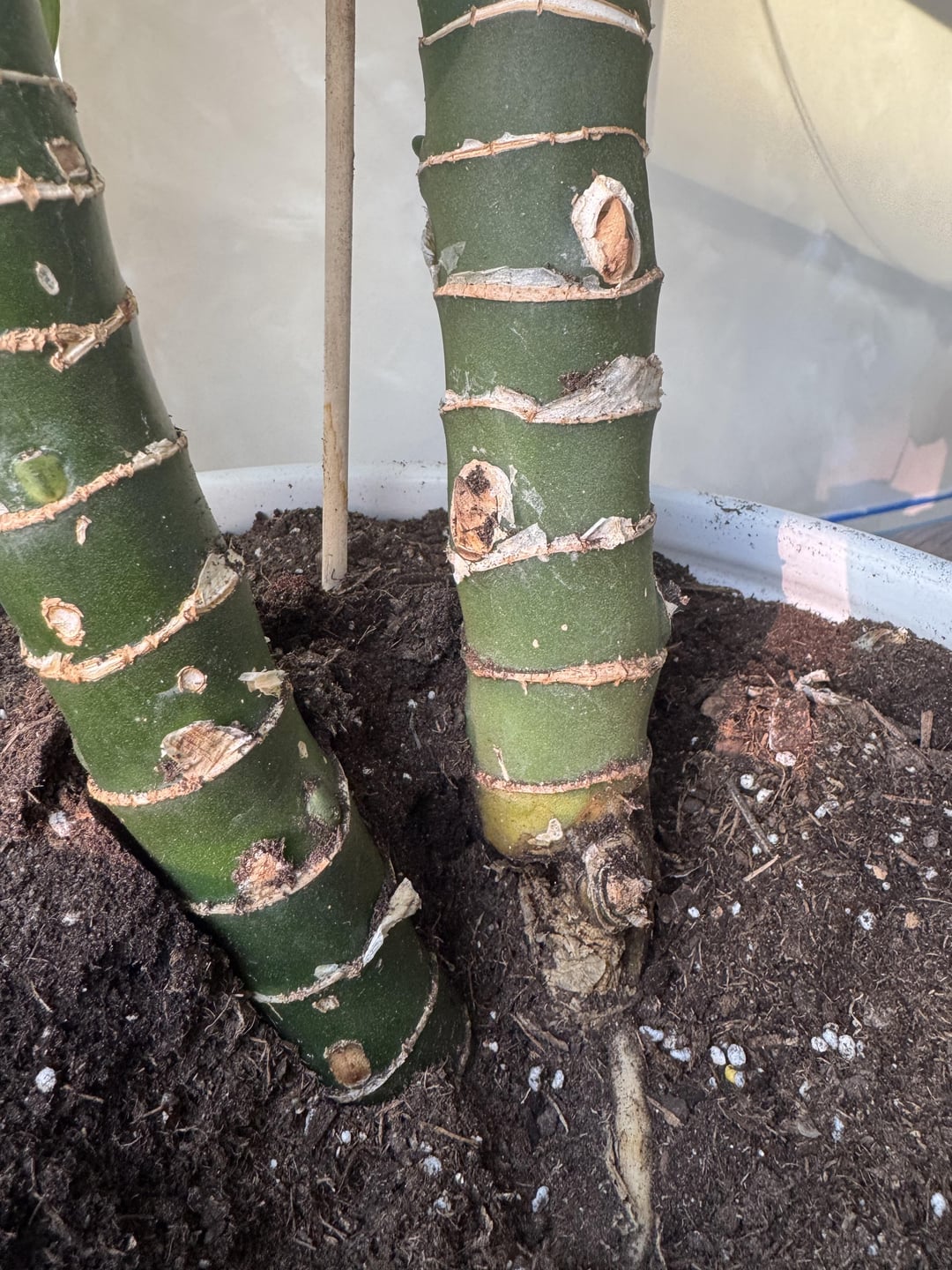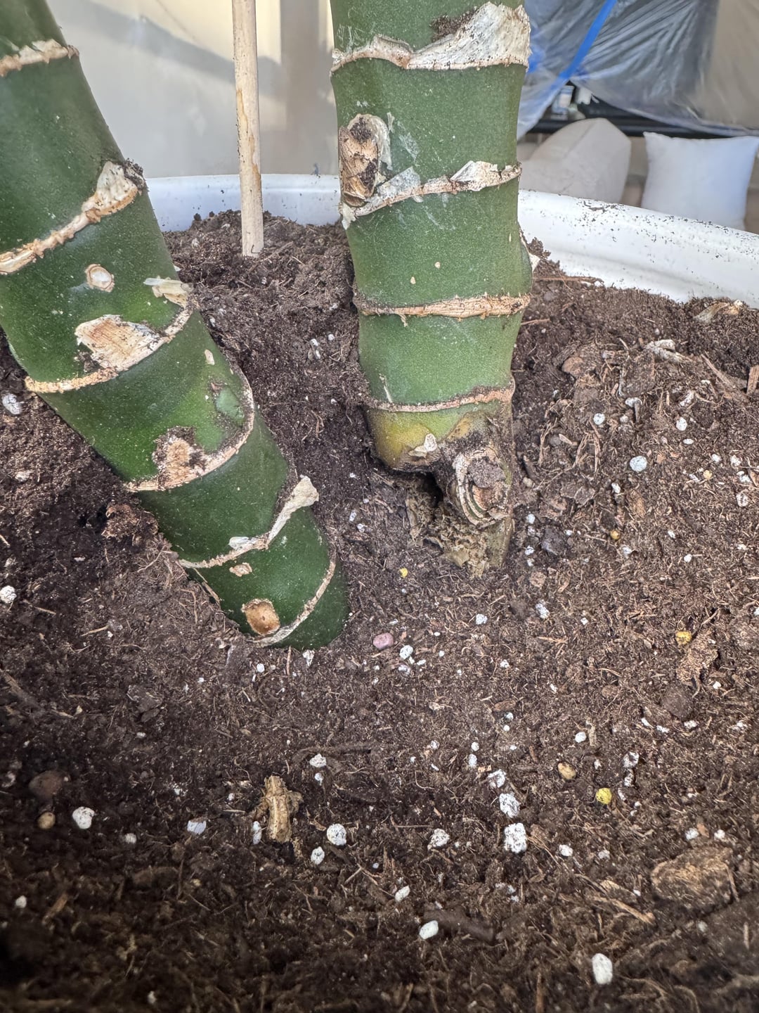 1か月ほど前から、株が大きく傾いていることに気づき始めたので、よく見てみると、根が空洞になっているのが見えました(この表現が適切かどうかわかりませんが、写真を添付しました)。どうやら何かが噛みついたようだ。成長が止まってしまったのでどうやって助けて良いのか分かりません。ネットで読んだのですが、この場所の真上で切り取って植え替える必要があるとのこと。誰か助けてくれませんか!