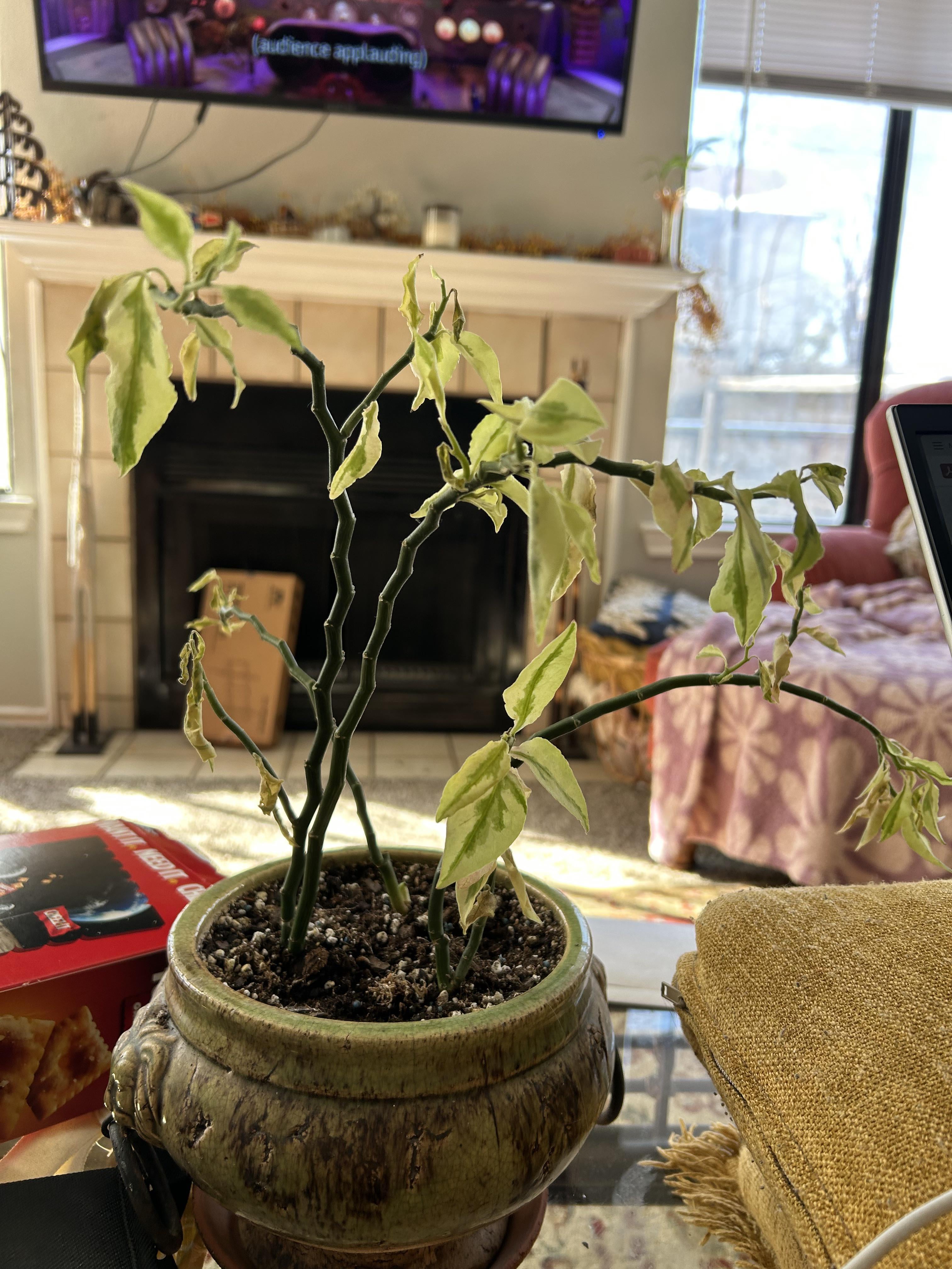 何の植物か分かりませんが、数年前にファーマーズマーケットで購入したものです。最近植え替えたのですが(この鉢には他の植物も植えていますが、このような影響は一度もありませんでした)、それ以来、見た目がとても悪くなりました。葉も落ちてきて、茎も全体的にかなり柔らかいです…困っているので何かアドバイスはありませんか!