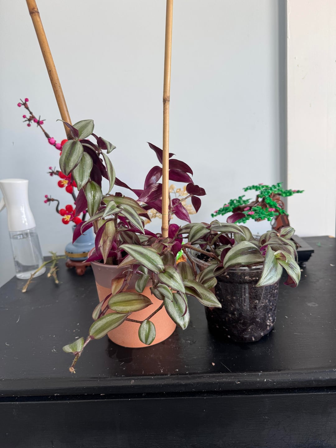 何か指摘することはありますか?おそらく植物が病気になっているか、鉢植えの状況が悪い可能性があります。私はこれらの植物を約7か月間飼っていますが、竹を除いて、古いものもあれば若いものもあります。竹は4〜5年間飼っています。私の植物コレクションを評価してくれる人たちに見せたかっただけです。経験があまりなく、まだかなり新しいと感じているので、指摘すべきヒントがあれば書き留めておきます。最後の写真の「虫」もお楽しみください🪱