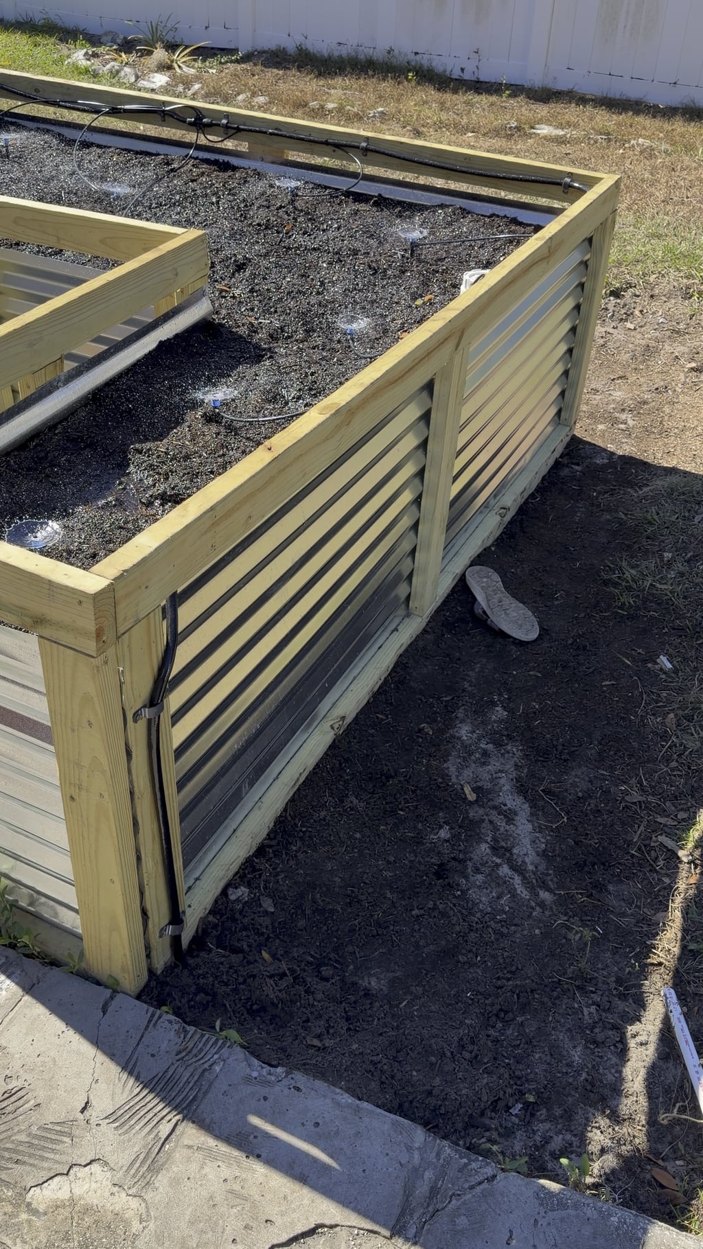 初めてのレイズドベッドが完成し、レタスが芽を出し始めました。