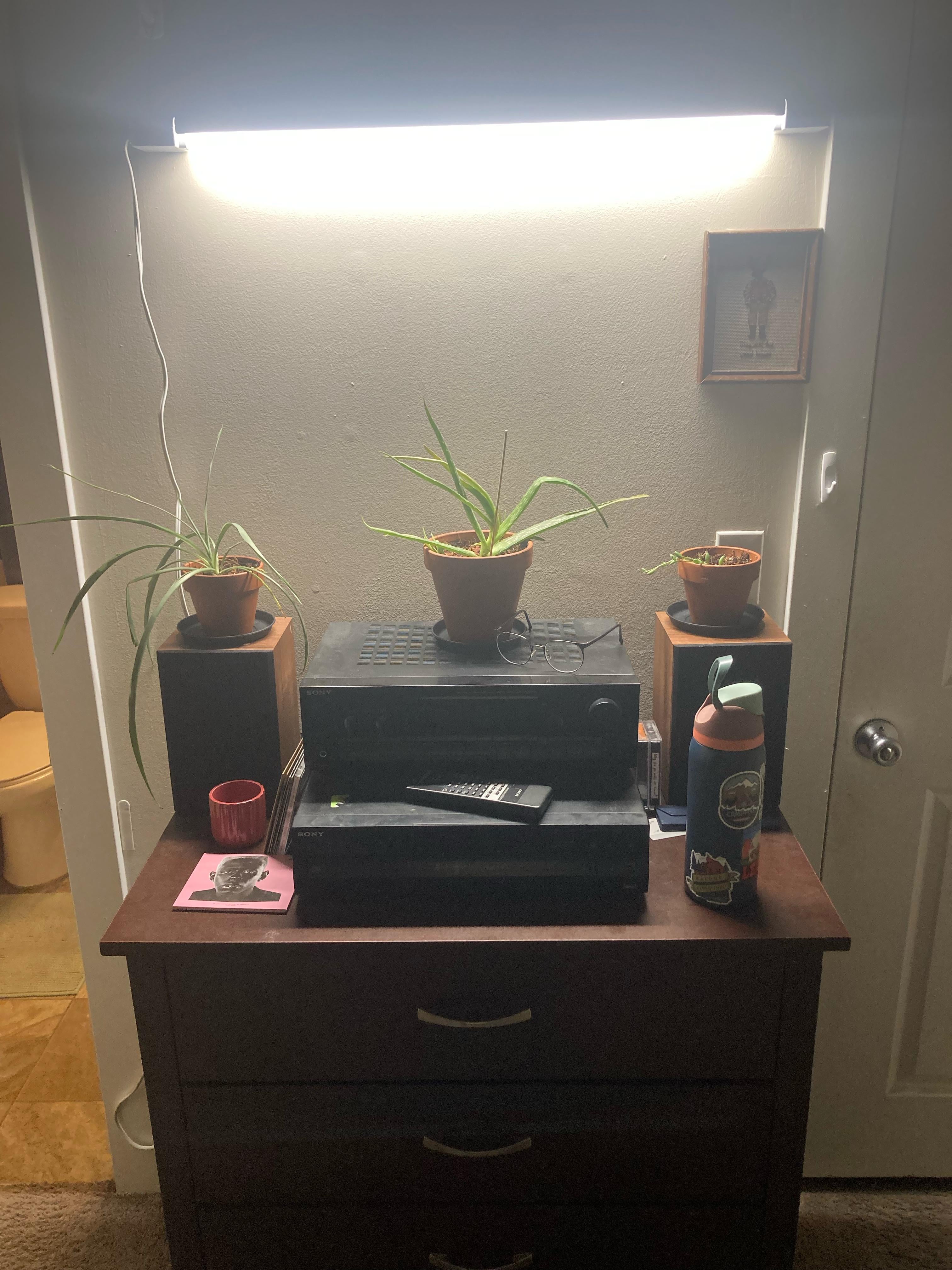すべての見た目は気に入っていますが、実際にすべてを正しく実行していることを確認したいだけです。私は非常に明るい 4000k LED ライトを持っていますが、それが植物 (クモ、アロエ、バナナのひも) にとって低すぎるかどうかはわかりません。