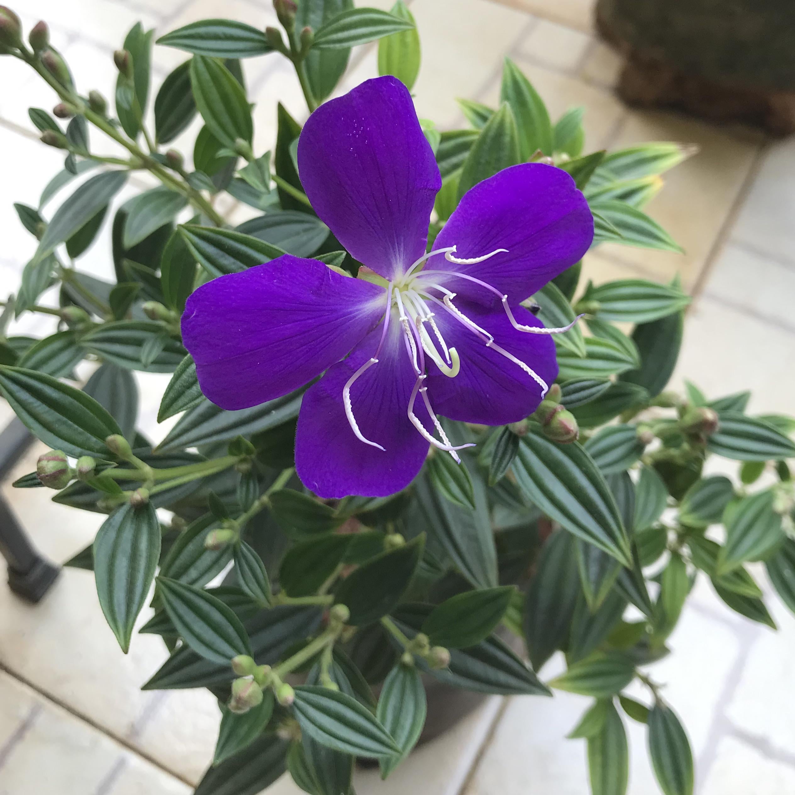 パープルグローリーブッシュの初開花。そしてあちこちで蕾が膨らんでいます。