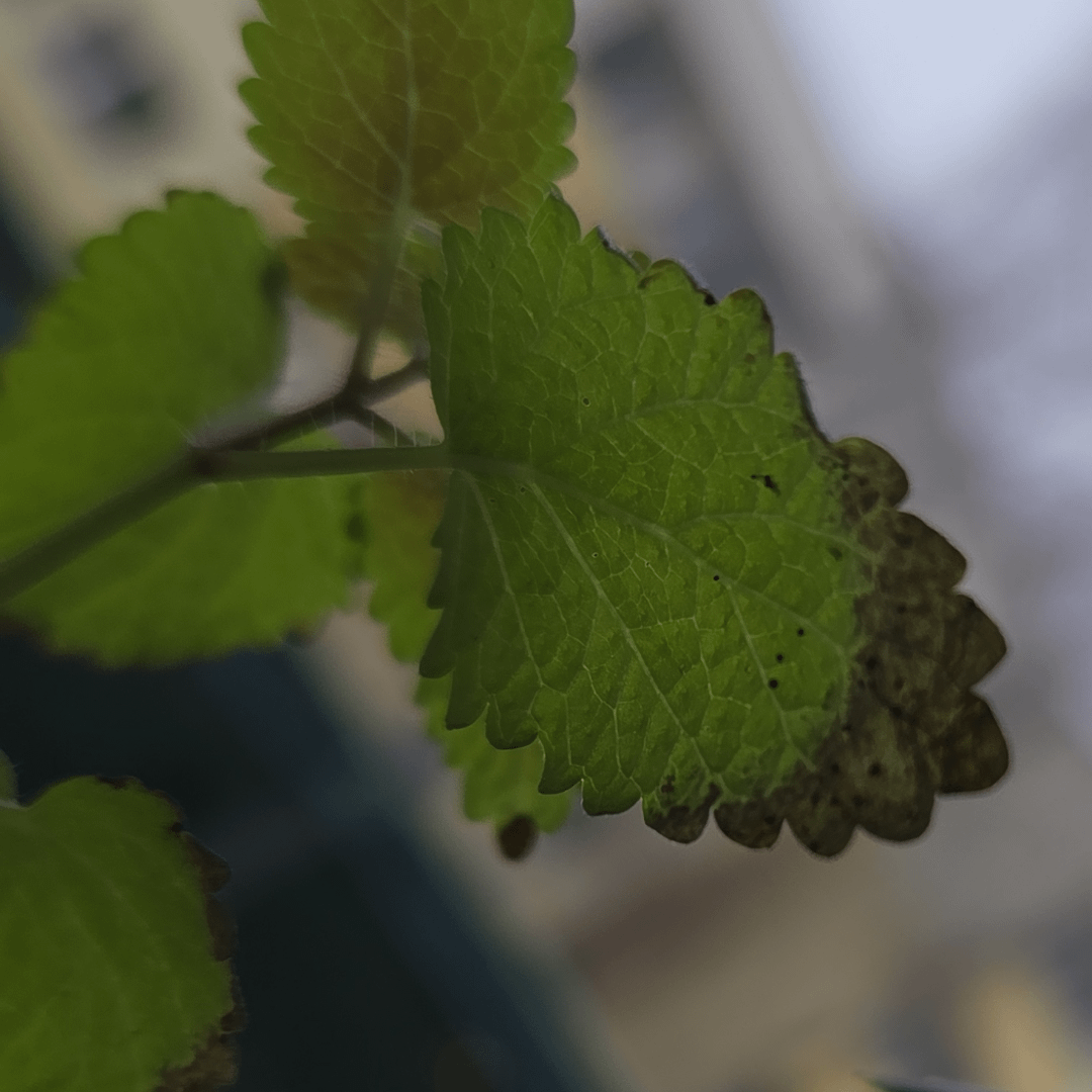 せっかく取り除いたバジルが、ミントに何か厄介なものを感染させてしまったのです。その隣にある他の 2 つの植物 (アロエとペラルゴニウム) は、今のところ免疫があるようです。