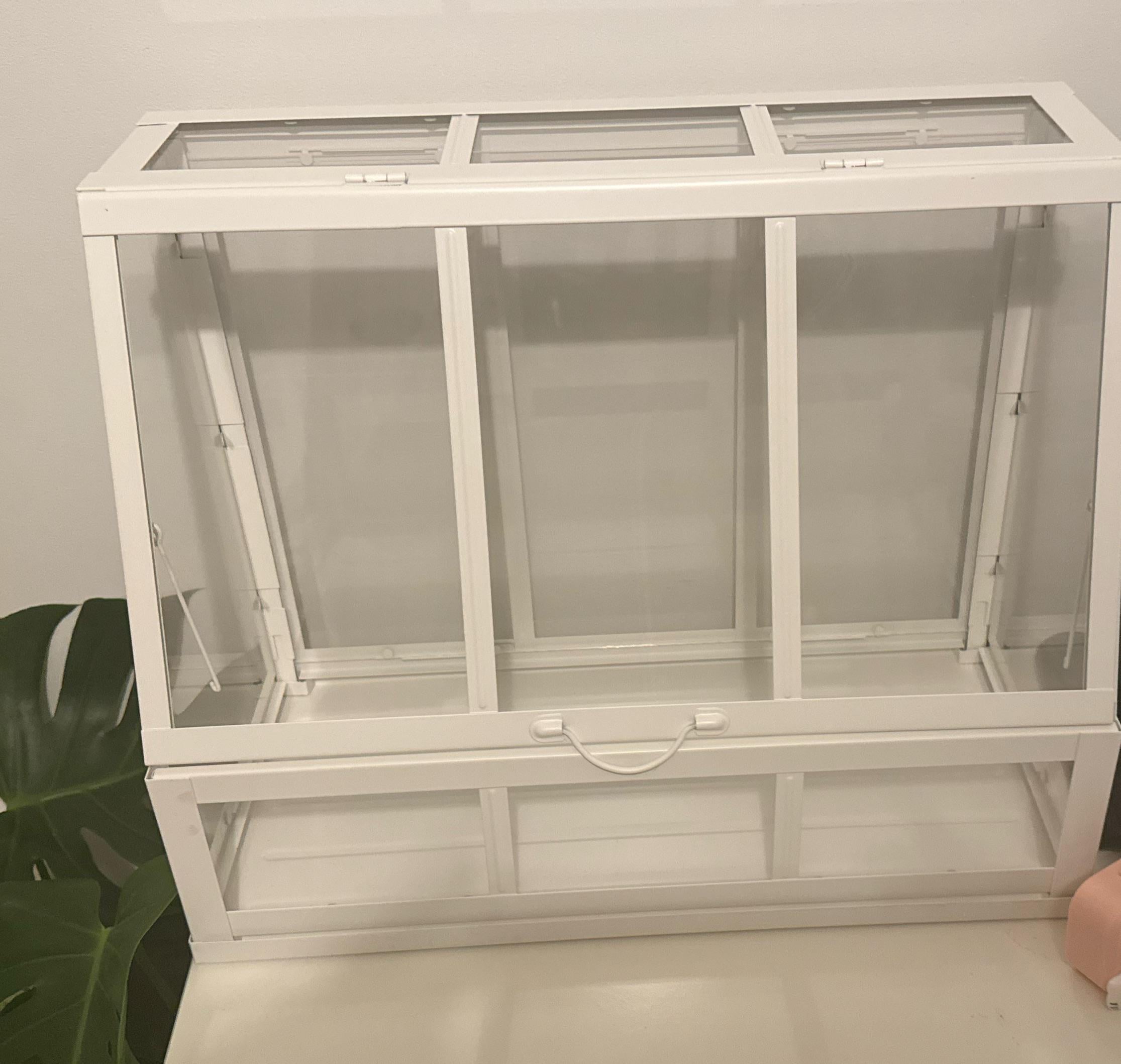 IKEAの温室です。とても可愛かったので旅行中に衝動買いしてしまいました。植物を棚に置いて湿気が逃げないように風通しをしています。 どのような植物や装飾品を追加すればよいですか? (南向きの窓が一日中よく当たるので、照明は問題ないと言いたいのですが、上部に良いグローライトを追加するつもりです。)