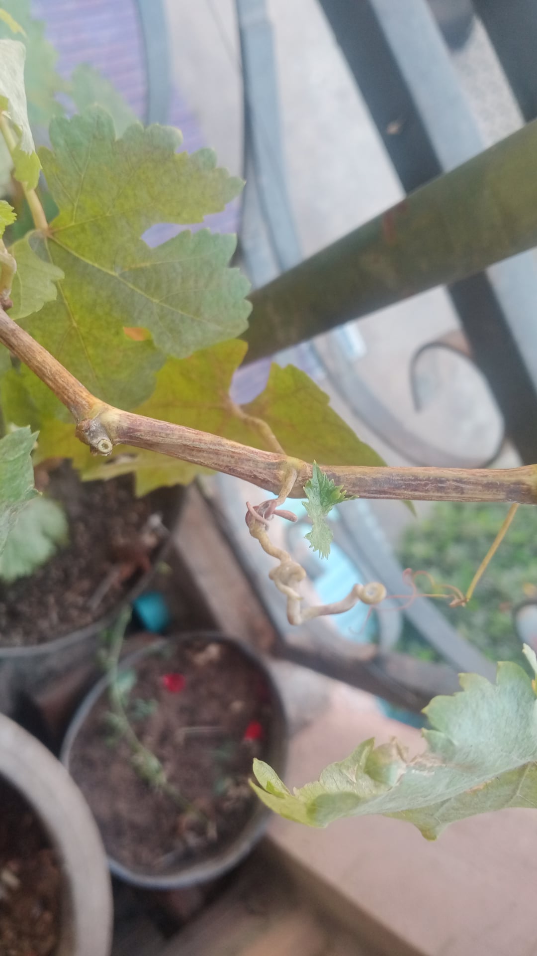 誰かこれが何なのか特定するのを手伝ってくれませんか。ブドウの蔓を持っているのですが、蔓の上に白い粉のように見える黒いものが見えます。
