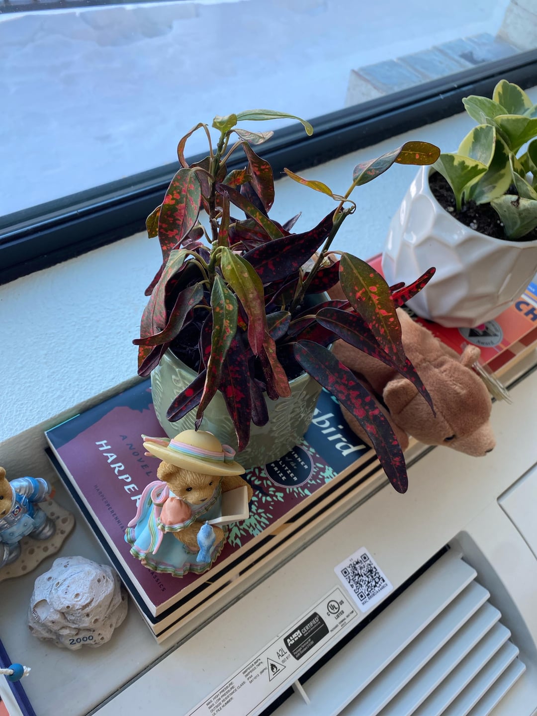 私が最も心配しているのは2番目の植物で、色の変化が多く、葉が垂れ下がっています。これらの植物は高光植物としてマークされているため、1 日に約 4 ~ 6 時間、窓から直接光が当たります。彼らはもらいすぎていると思いますか?少なすぎますか?水やりのスケジュールが悪いですか?彼らは週に一度水を与えられます。 この場所で非常にうまくいっている同じ光推奨マークが付いている他の 2 つの植物があります。