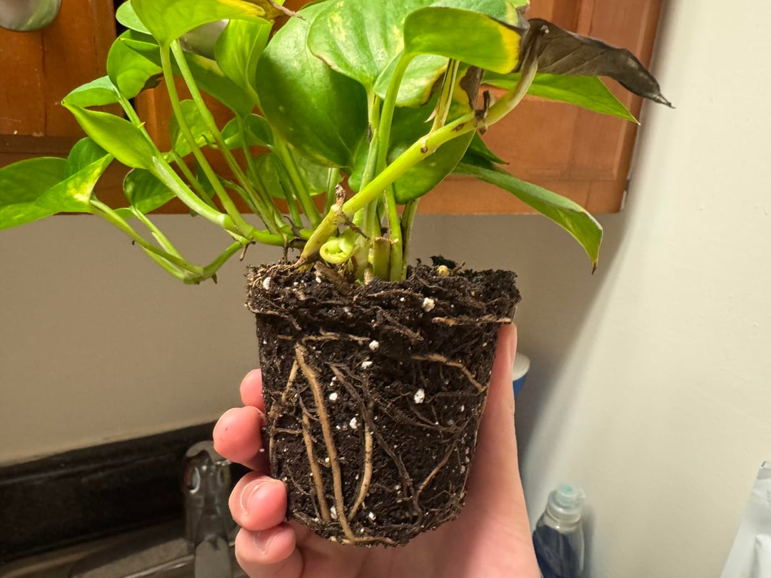 植物とその根の画像を添付しました。確かに枯れた小さな根がたくさんありますが、大きな根はまだ黄褐色で白く見えます。植物も土もいい香りがします。