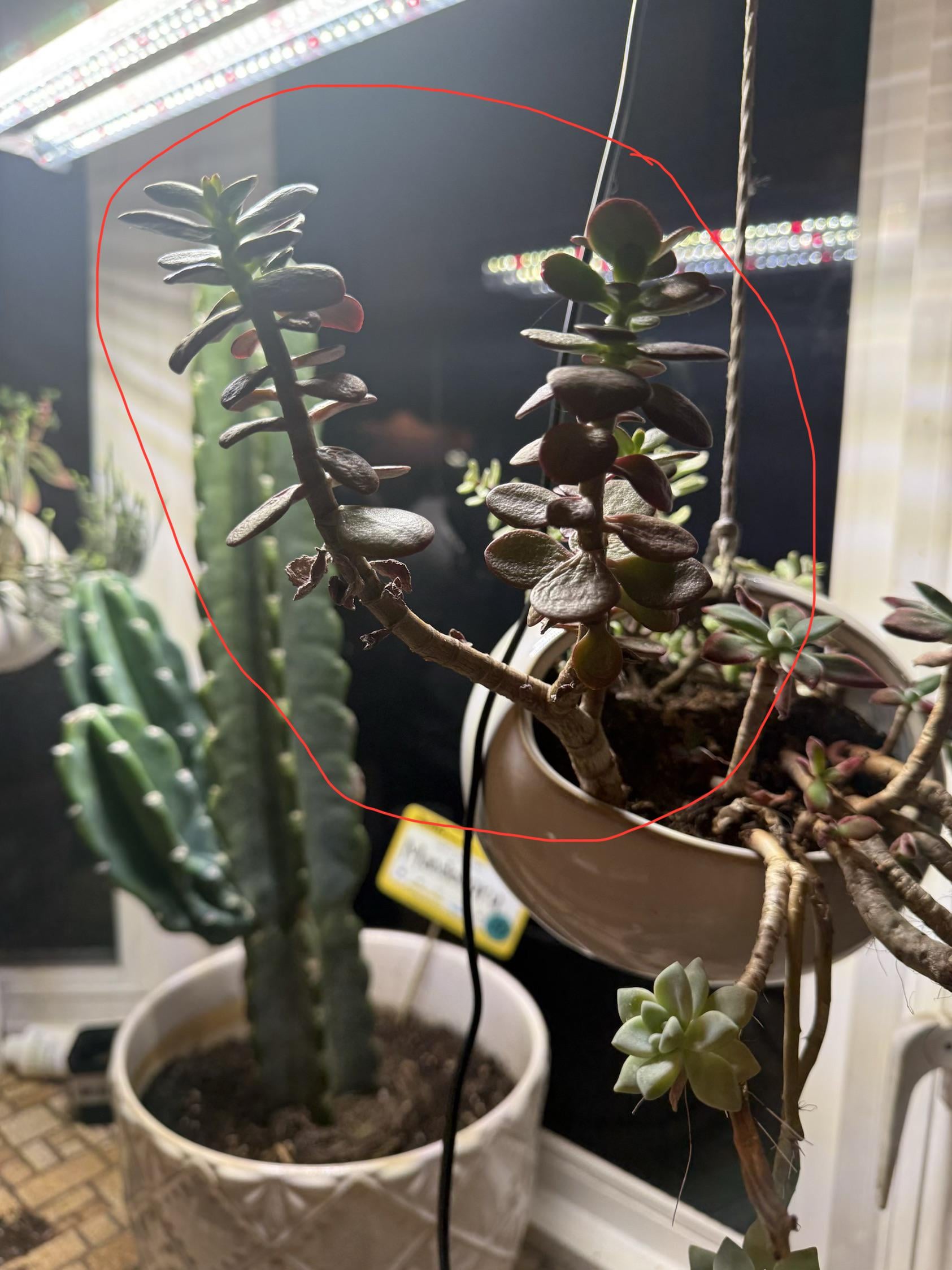 私の夫は、4年前に多肉植物コーナーでそれを購入しました。 ChatGPT はそれがヒスイの木だと言いましたが、私にはそうではないと言うかなり知識のある友人がいます。調べていると非常に多くの異なる答えが得られるため、助けを求めています。 吊り下げポットは、暖かい季節には通常、玄関ポーチの外に吊るされていますが、今は天気のせいで屋内にあります。