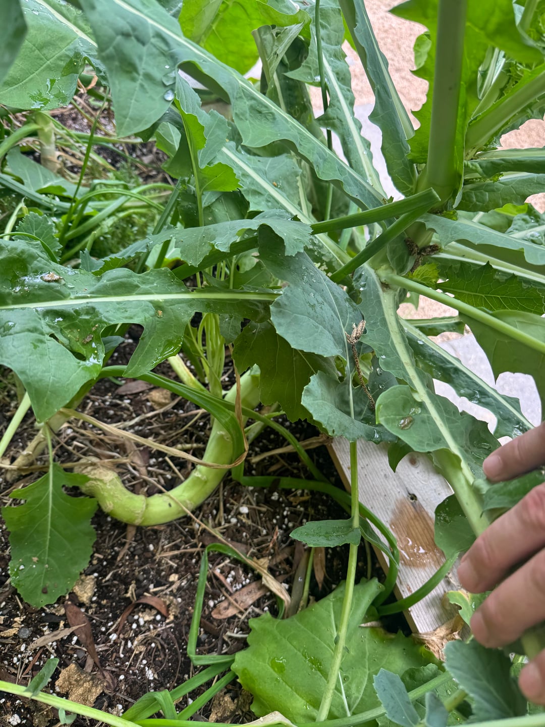 数か月前に種を植えて、それが何であるかを覚えていると思ったのは間違いでしたが、植えた記憶と一致するものは何もありませんでした。コールラビとキャベツの両方をその場所に植えたと思っていましたが、他の植えたもののようにコールラビ野菜が実らず、キャベツのようには見えないと思いました。どちらも植えるのは初めてなのでよくわかりません。あるいは、別の何かかもしれません。見覚えがあるようでしたら教えてください。