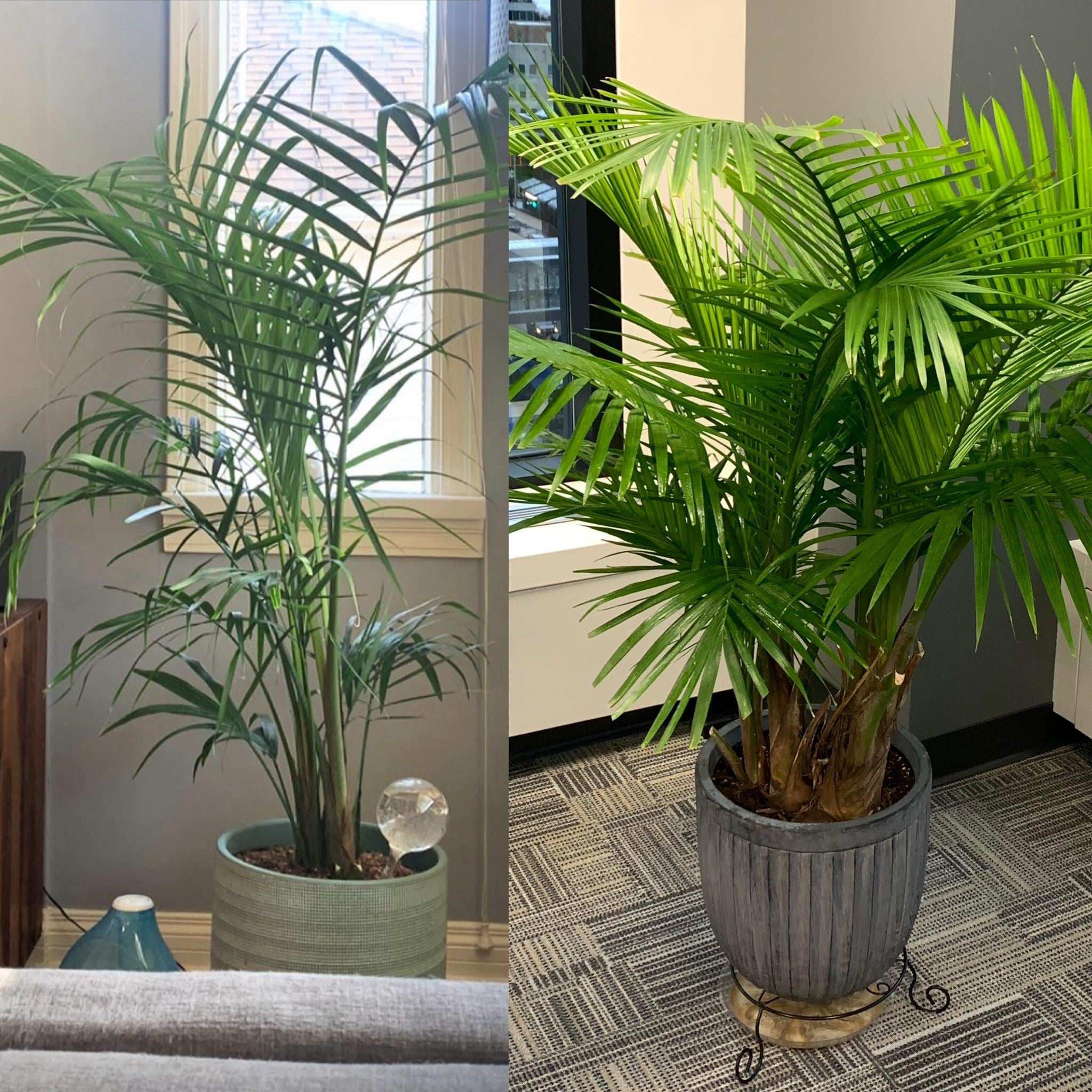 2 歳のイケアのマジェスティ パームの昔と今。私の最北の場所では1月ですが、彼女は3つの新しい槍を出しています!私は彼女を私のオフィスに移動させました。私のチームの全員が毎日彼女に霧吹きをするのが好きです。 😂