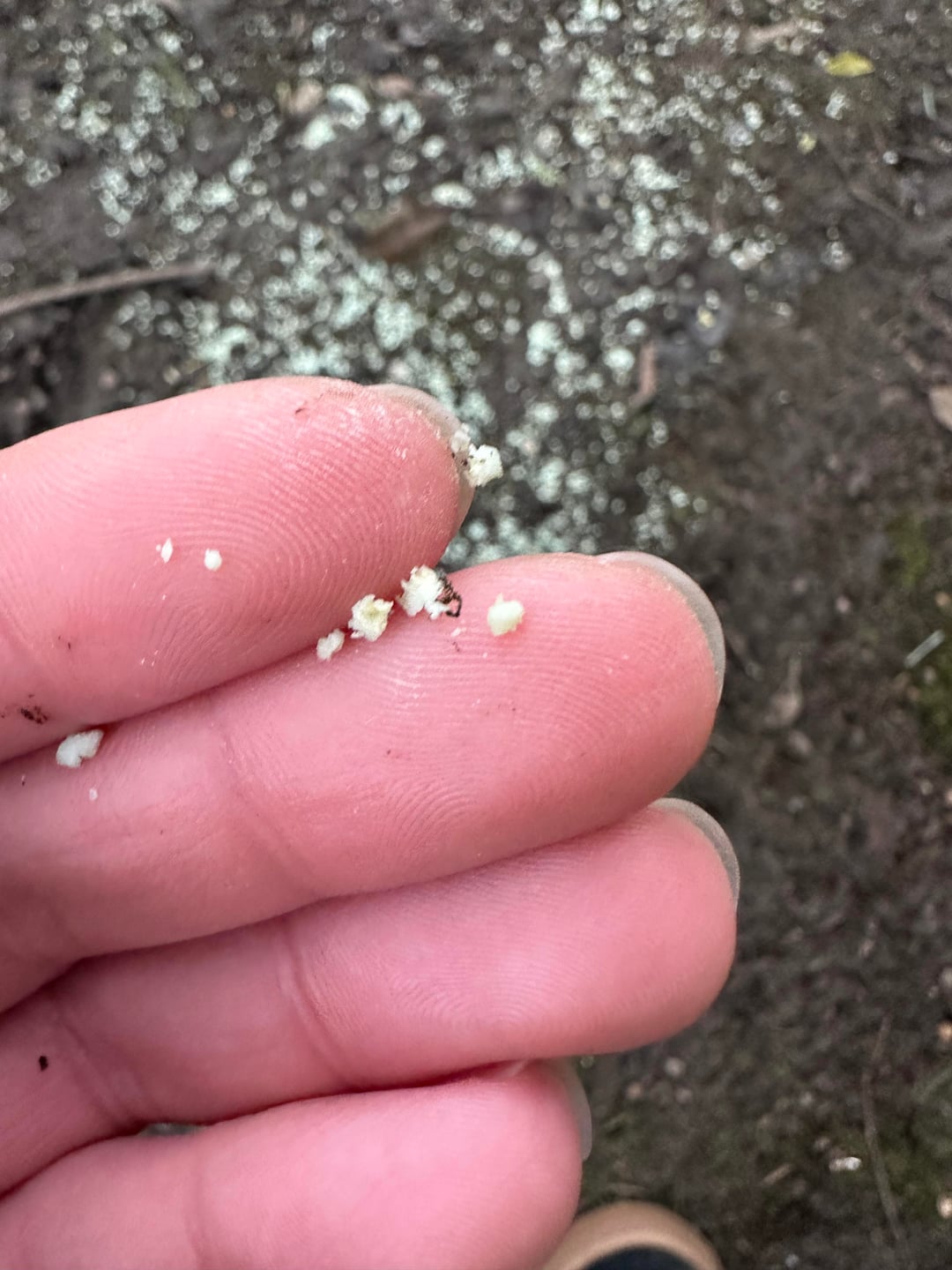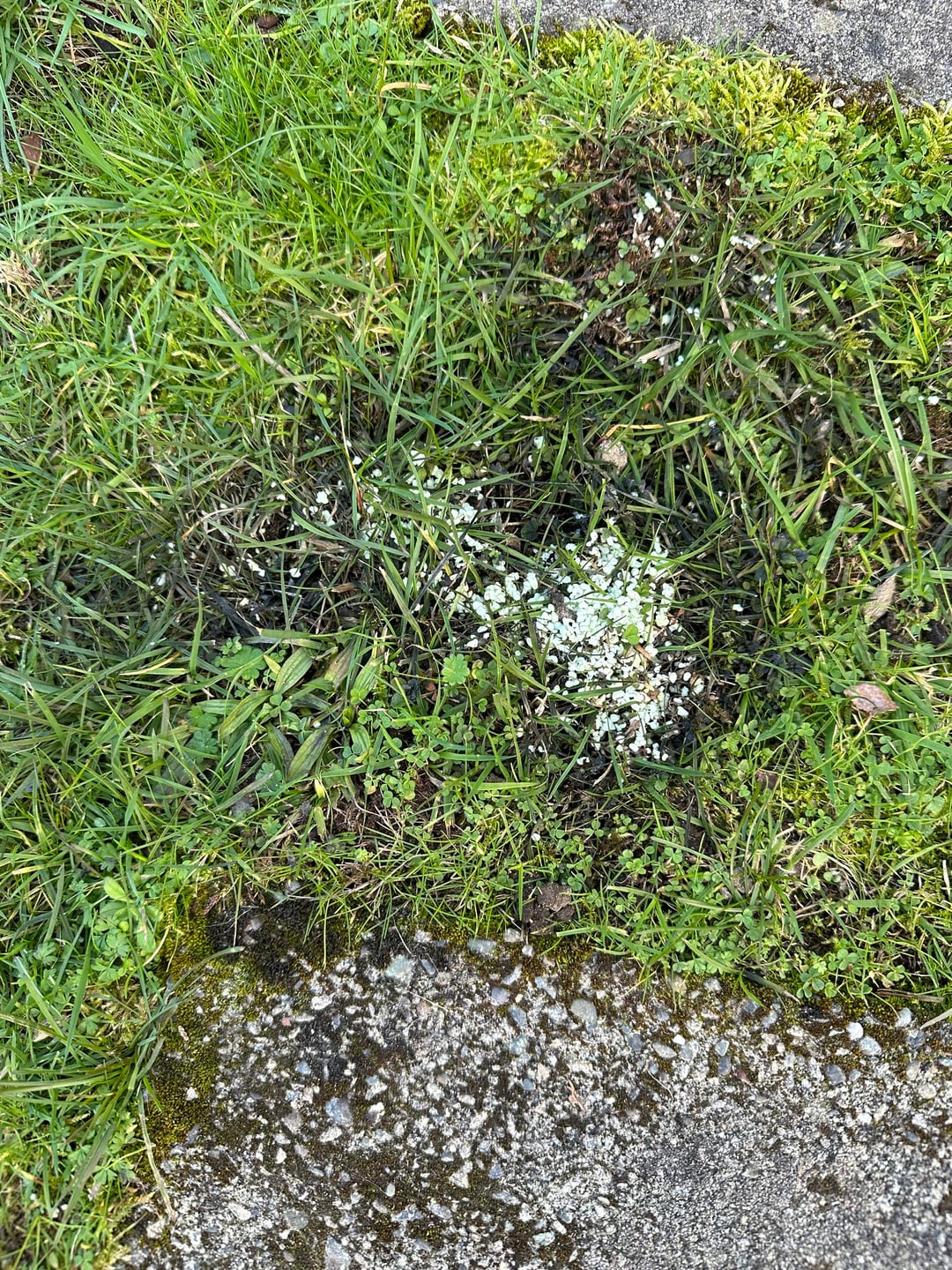 天気が寒くなると出現し、裸の(あるいは濃い色?)領域に集中しているようです。また、前にある芝生の一部が何らかの理由で濃い緑色に変色しました。これは何でしょうか?