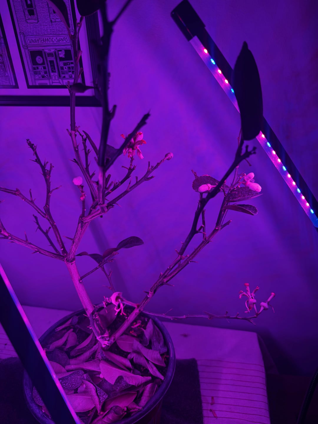 24時間ほど前までは非常に調子が良かったのですが、今はほぼ全裸状態です。すぐ横にライムを植えていますが、元気に育っています(同じ条件)。屋内にありますが、植物のライトを1日12時間点灯させています。