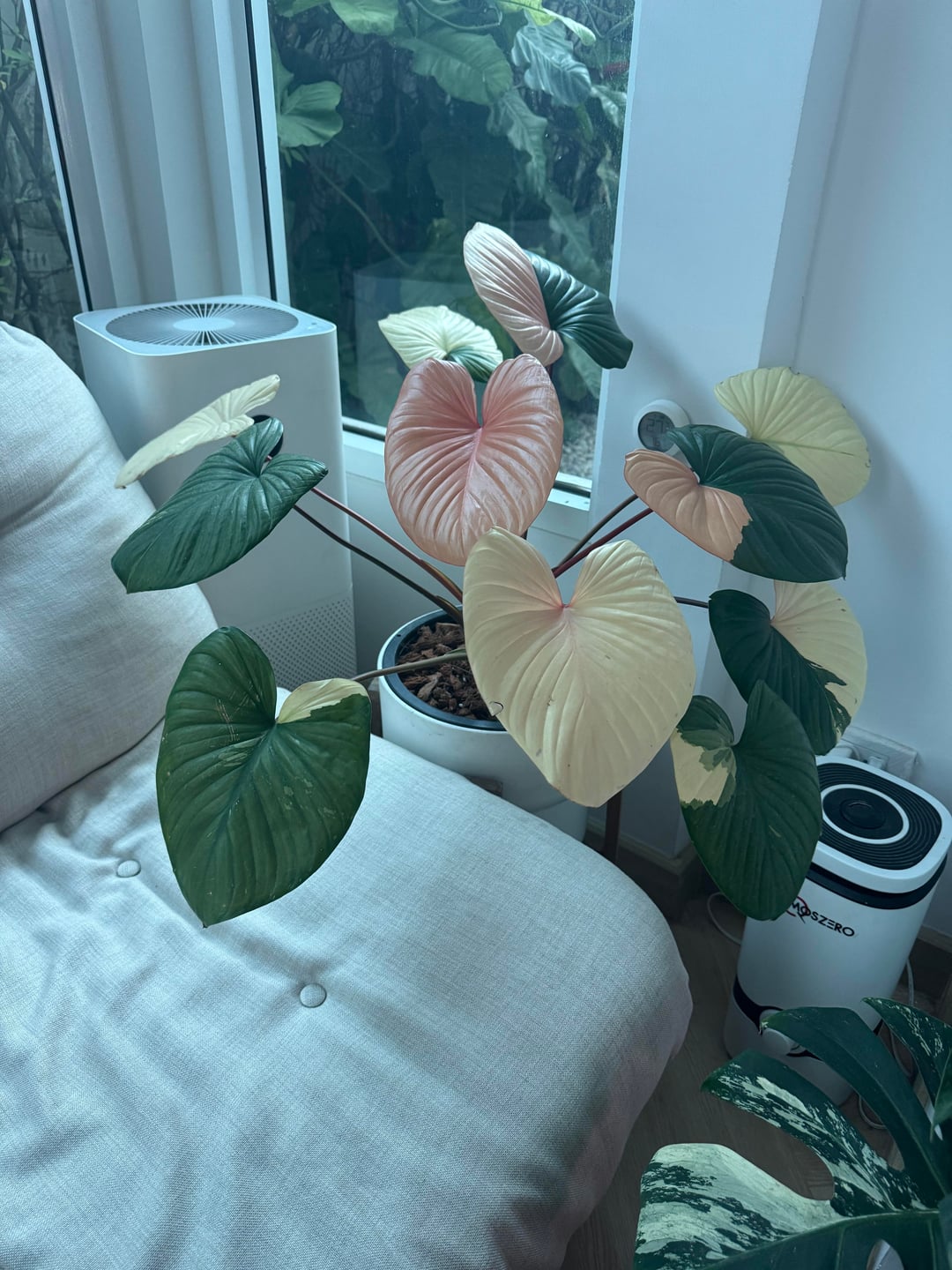 私が所有するすべての植物の中で、この植物は常に私の想像を超えて進化しています。彼女がとても美しいので、私は彼女を迎えてから毎日彼女をチェックするのをやめられません。ただ共有したかっただけです。 彼女はホマロメナ ルベセンス ピンク斑入りです。