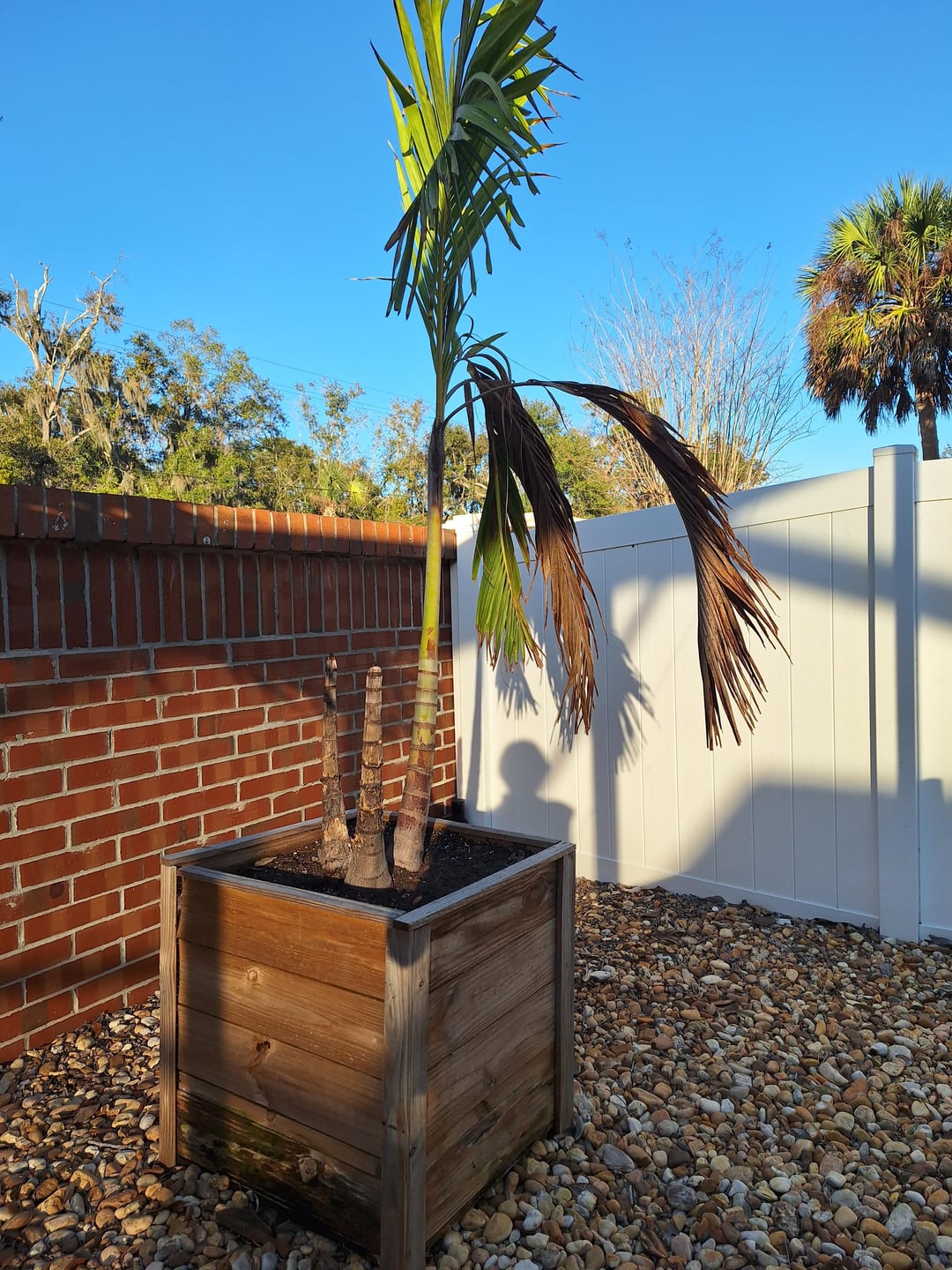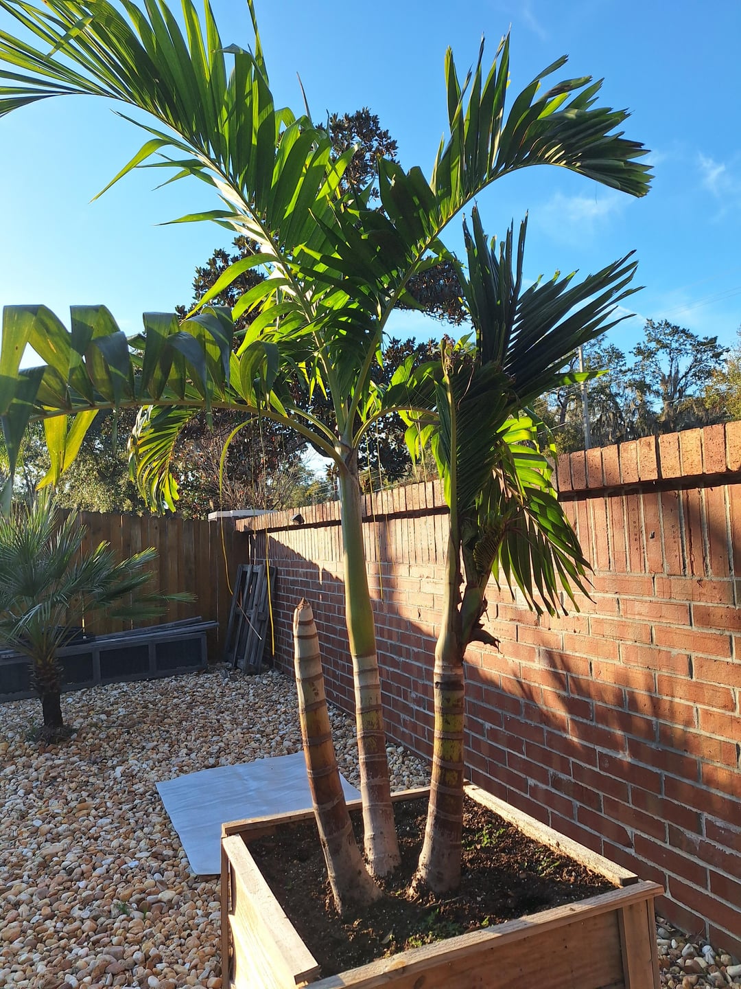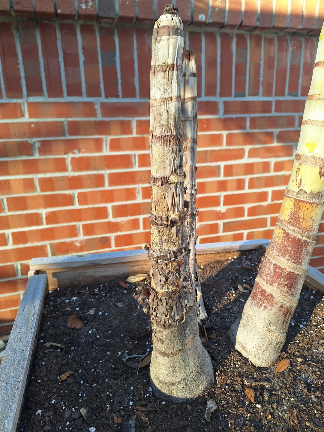 こんにちは。昨年、私たちは巨大な木製プランター (良質な土壌、ヤシ肥料など、排水設備) にクリスマスヤシの木を 4 本植えました。一つは素晴らしいです。 2本はトリプルの幹が変形していて、1本の幹は強風で幹が途中できれいに折れていて、3本には2本の健全な幹があり、1本は枯れかけている/水浸しになっているように見えますか? 4番目に、木の幹が2本枯れています。私はこれらの人たちを愛しているので動揺します。週に2回、10秒ずつホーススプレーをしています。明日、庭師さんに来てもらって、ベランダのそばの地面兼芝生エリアに2本を植え替える予定です。また、空いた2つのプランターに植える、成長しそうな大きな植物も探していました。ワールドワイド?私たちはヤシの木や園芸についての知識がありません…当然のことです。お願いします、そしてありがとう!