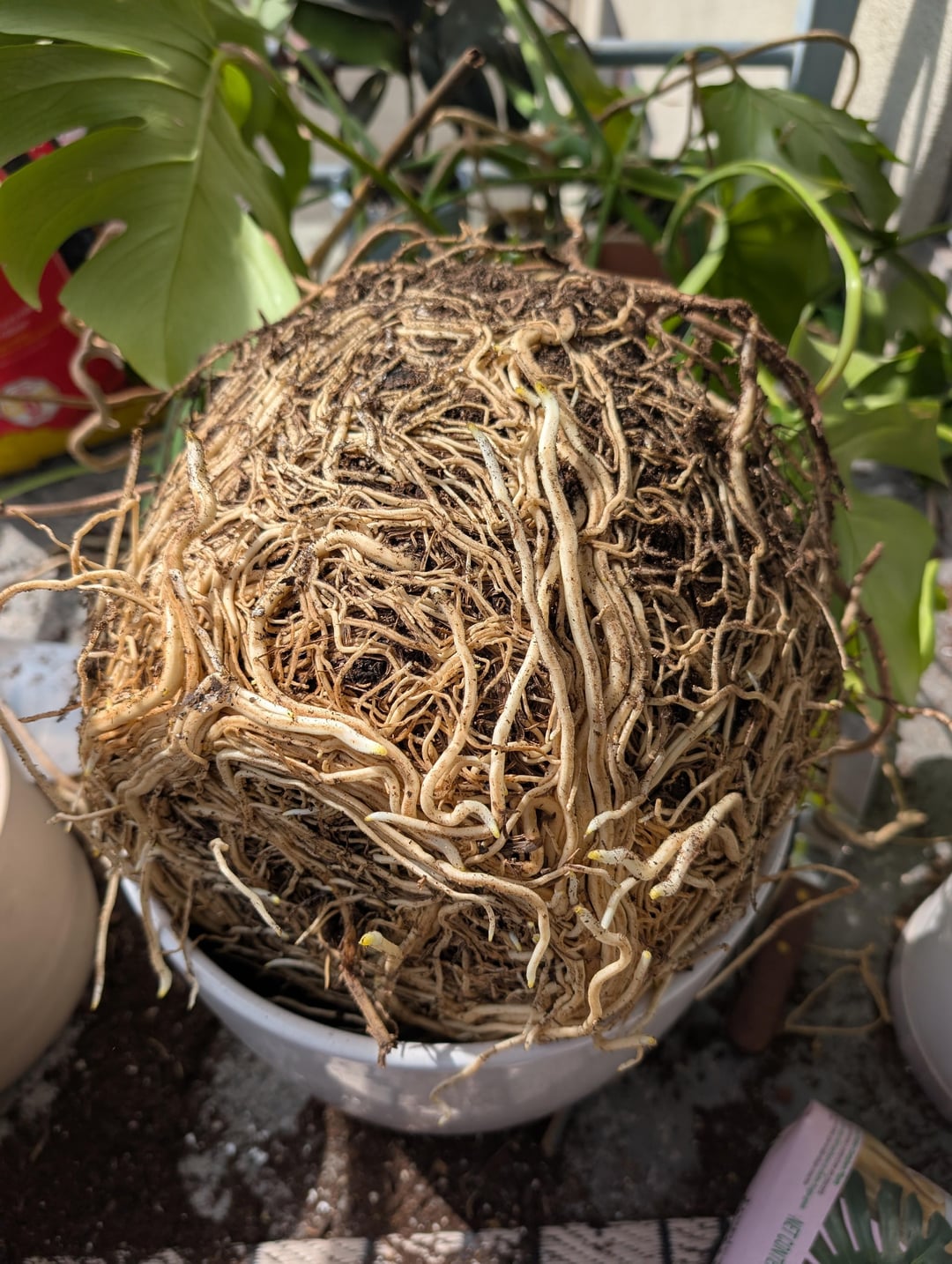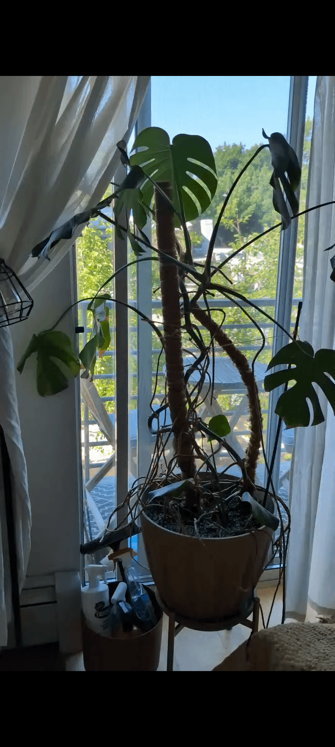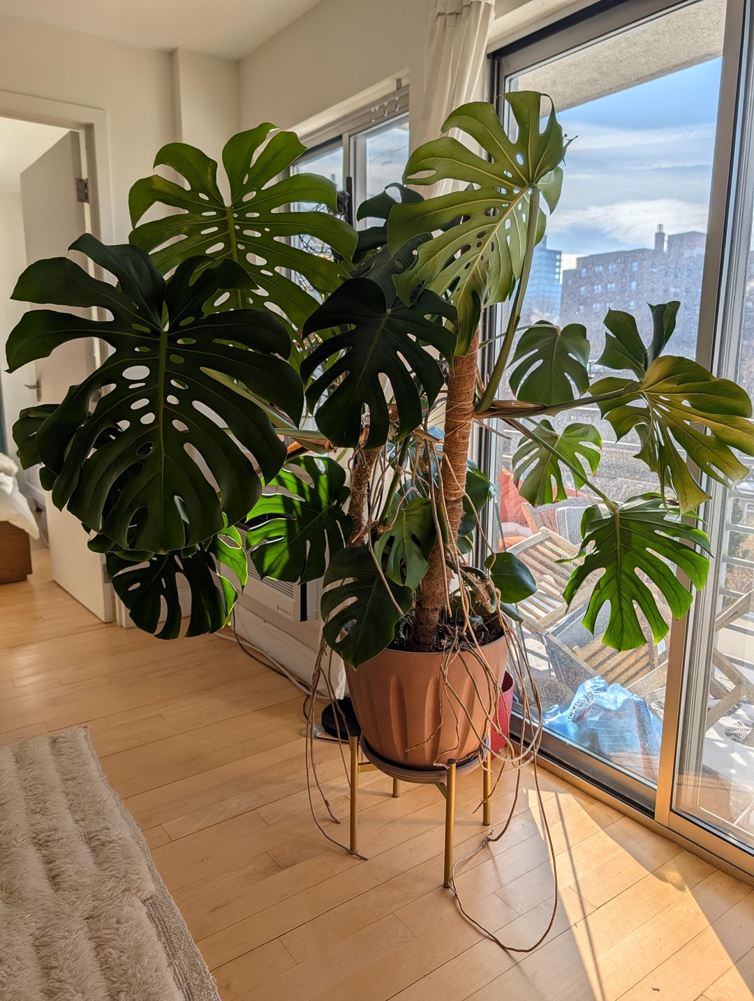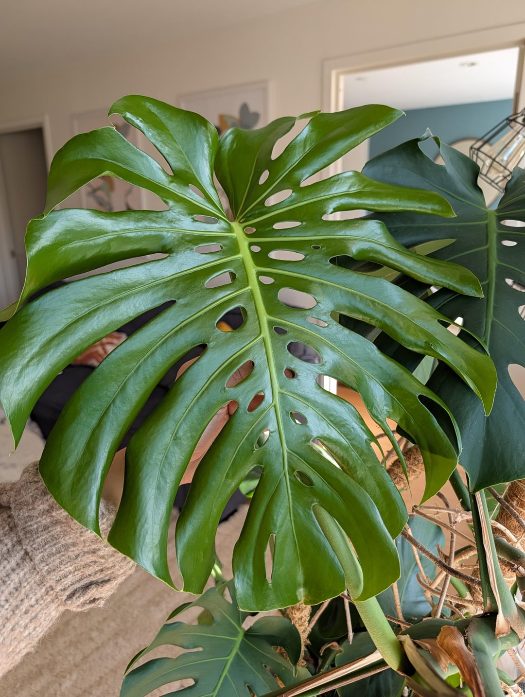 昨年、私が悲しいモンステラについて投稿したところ、ユーザーから、それがルートに縛られているのではないかとの指摘を受けました。ルートバウンドでした! 7月に植え替えたのですが、すぐに葉の半分が枯れてしまいました(最後の写真)でも、以前よりも元気になって戻ってきました!それ以来、数週間ごとに葉が展開し、そのたびに葉が大きくなり、穴が開いてきました。下の葉が落ちて上部がかなり重くなっているので、もう少しうまく整理する方法を考えなければなりません。
