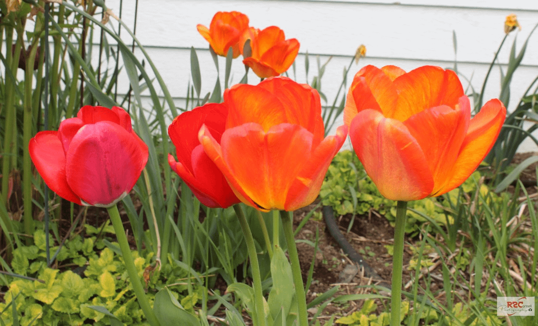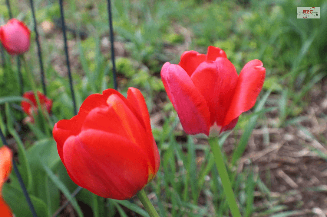春が確実に到来し、チューリップが満開になりました。最初の写真は、昨年の秋に植えた2つの新しいチューリップを示しています。