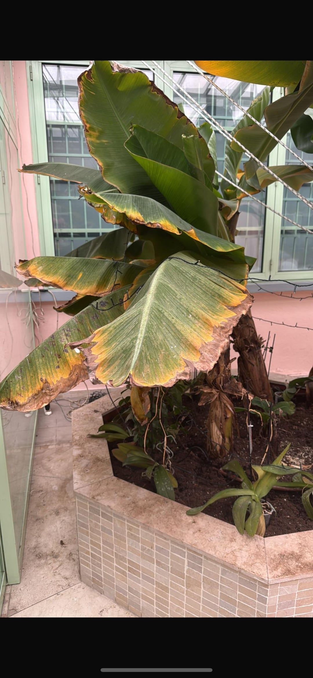 私の友人がバナナの木を持っています。以前はあんなに緑色だったのに、突然この黄褐色になってしまったのです。寒さや間違った水やりが原因の可能性が高いでしょうか?それとも?
