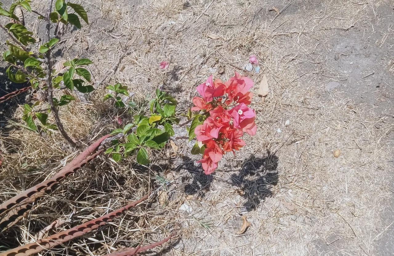 横断歩道にブーゲンビリアがポツンと生えている(植えられたのだと思うが、誰も手入れをしていない)。