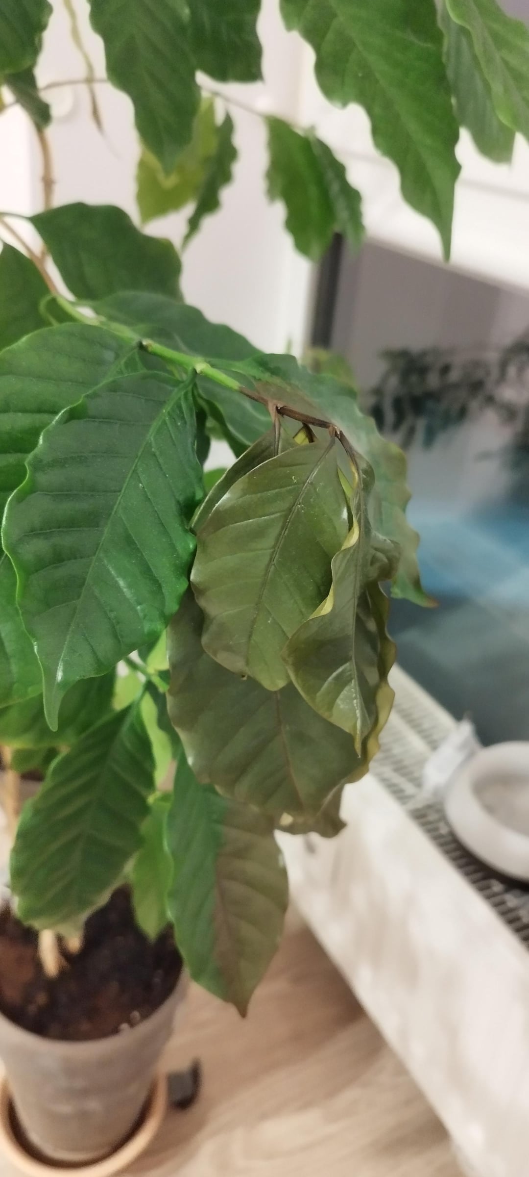 こんにちは、それが恐ろしいことではないことを確認したいだけです。 2日間の休暇を終えて戻ってきたところ、コーヒーの木の片側に黒い葉が付いていることに気づきました。