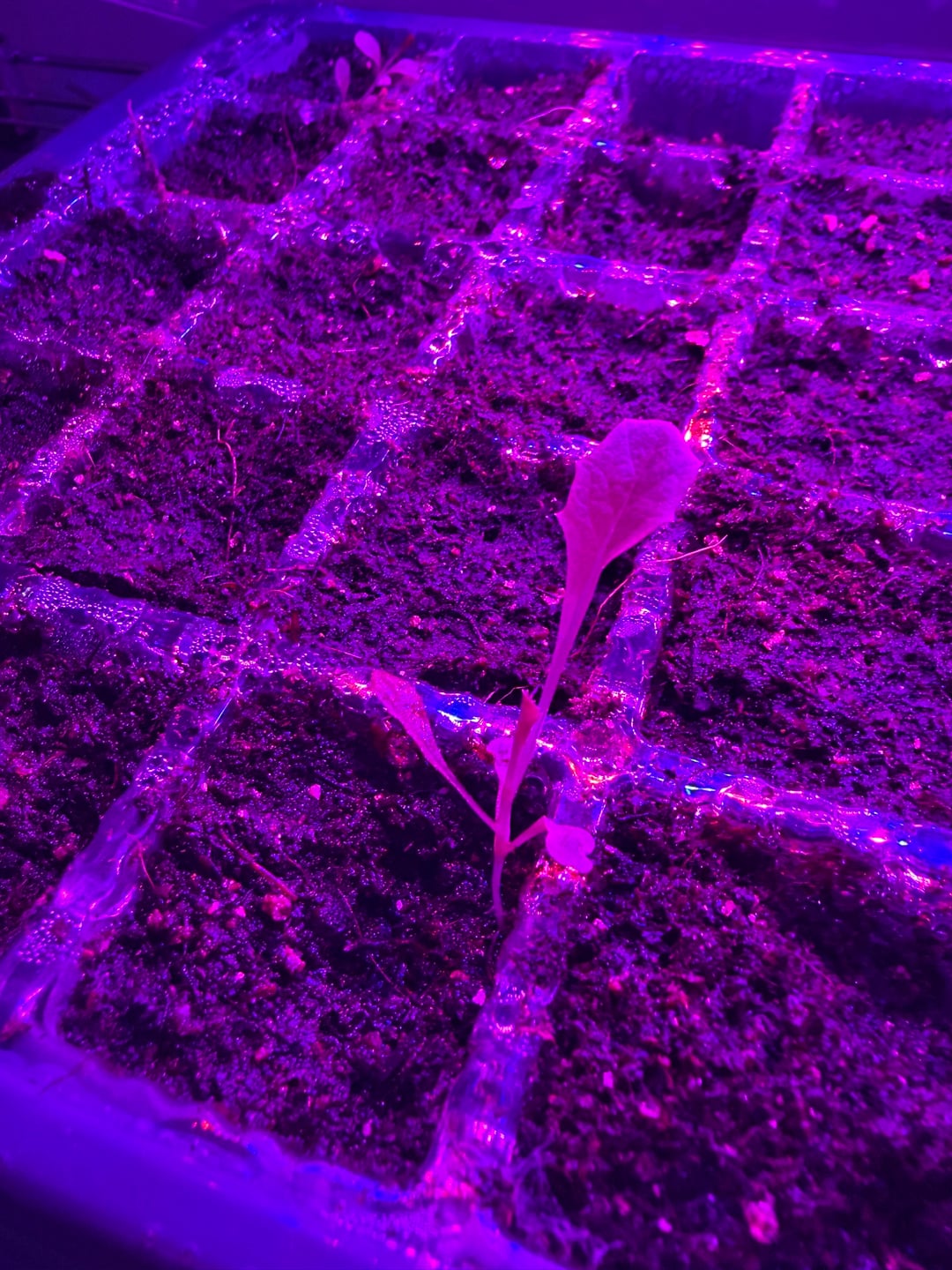 最近、新しい植物育成ライトを設置しました。 2歳の子供と私は、リサイクルショップで1996年の古い種を見つけて、何かが育つかどうかを確認するための科学実験をしました。最初はキュウリの芽だと思っていましたが、庭師仲間に何か違うのではないかと指摘されました。とにかく、これが私の2つの小さな苗です!