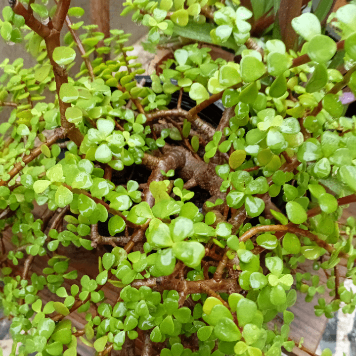 雨の中のポーチュラカリア・アフラ(ヒスイの植物)