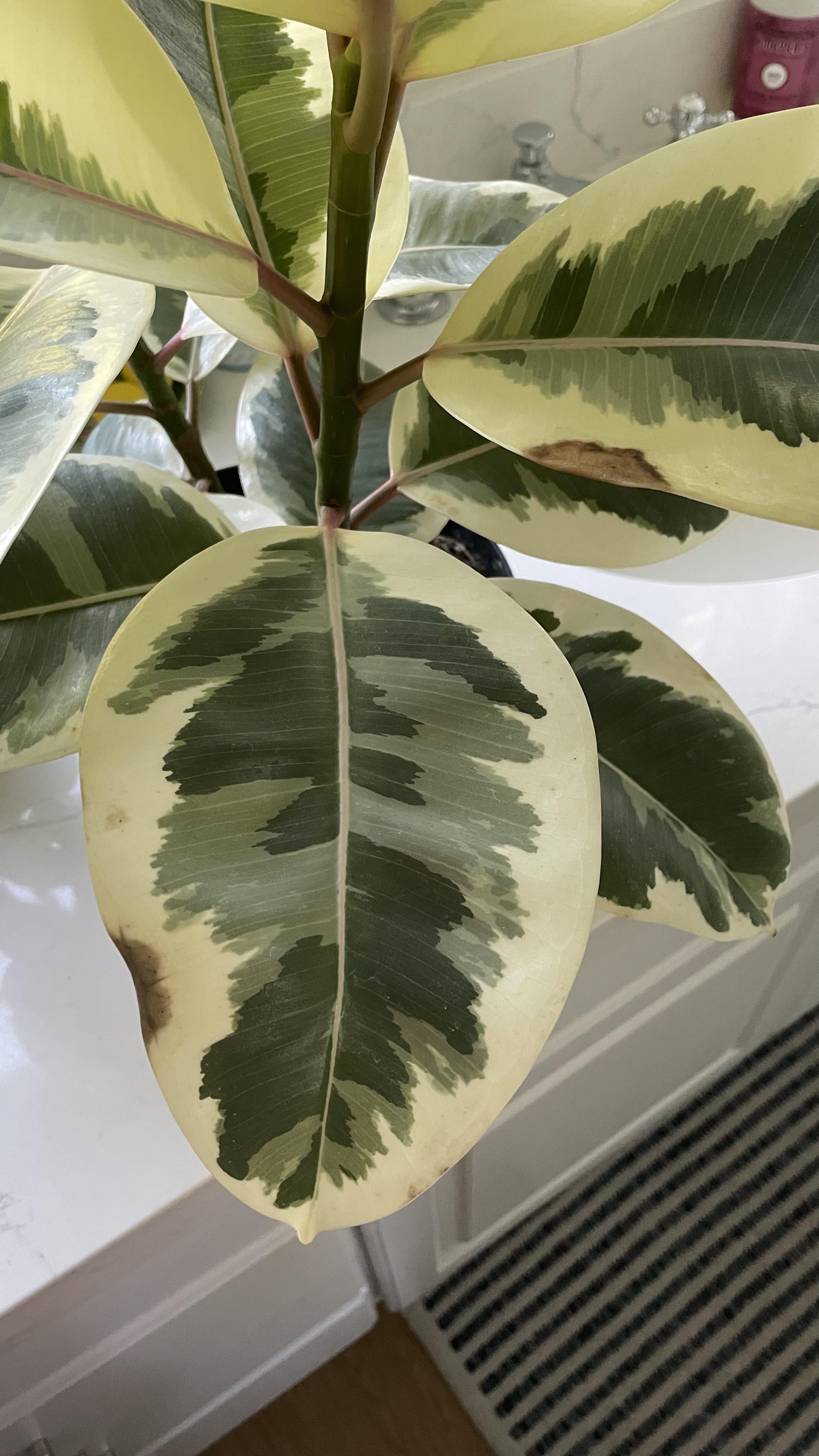 このゴムの木は1か月前に入手しましたが、完璧な状態でした。今、この褐変が葉に起こっています!主に明るい間接光が当たりますが、午前中には直射光も少し入ります。購入してから1~2回水やりをしました。持ち帰った後も植え替えはしませんでした。私は蘭の樹皮と熱帯植物の土を持っているので、それを入れ替えることができます。そうすべきですか??ヘルプ!!