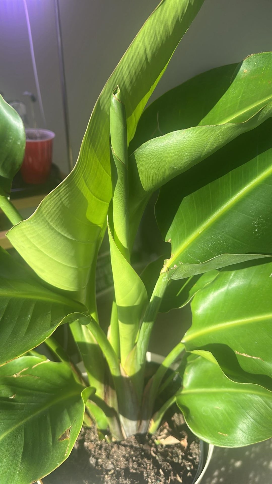 最初の葉は目立ち、数日間はほとんど解けそうになりました。 6日目、目が覚めると葉っぱがほどけていました!すばらしい。検査の過程で、2番目の葉が形成され、しっかりと包まれていることに気づきました。