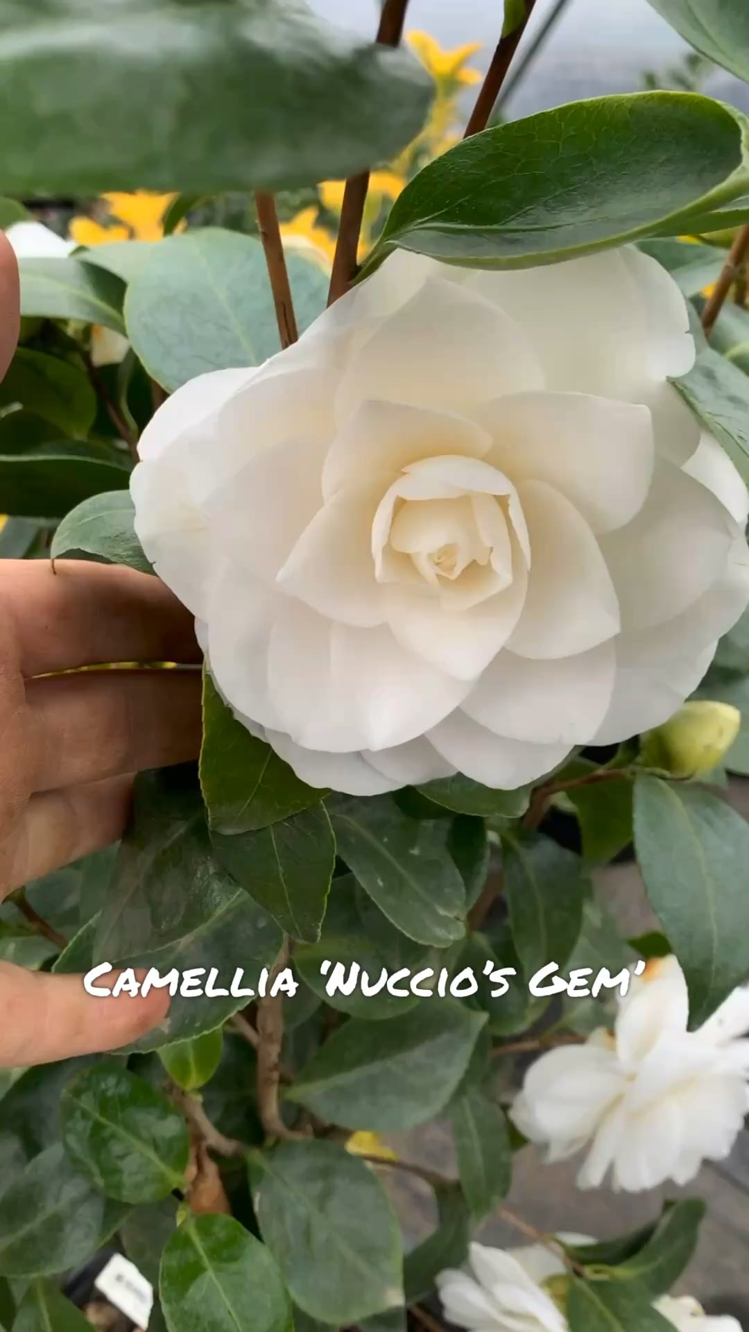 「Nuccio’s Pearl」カメリアについての投稿を見たところです。これは「Nuccio’s Gem」と呼ばれる、同様の純白のフォーマルダブルです。