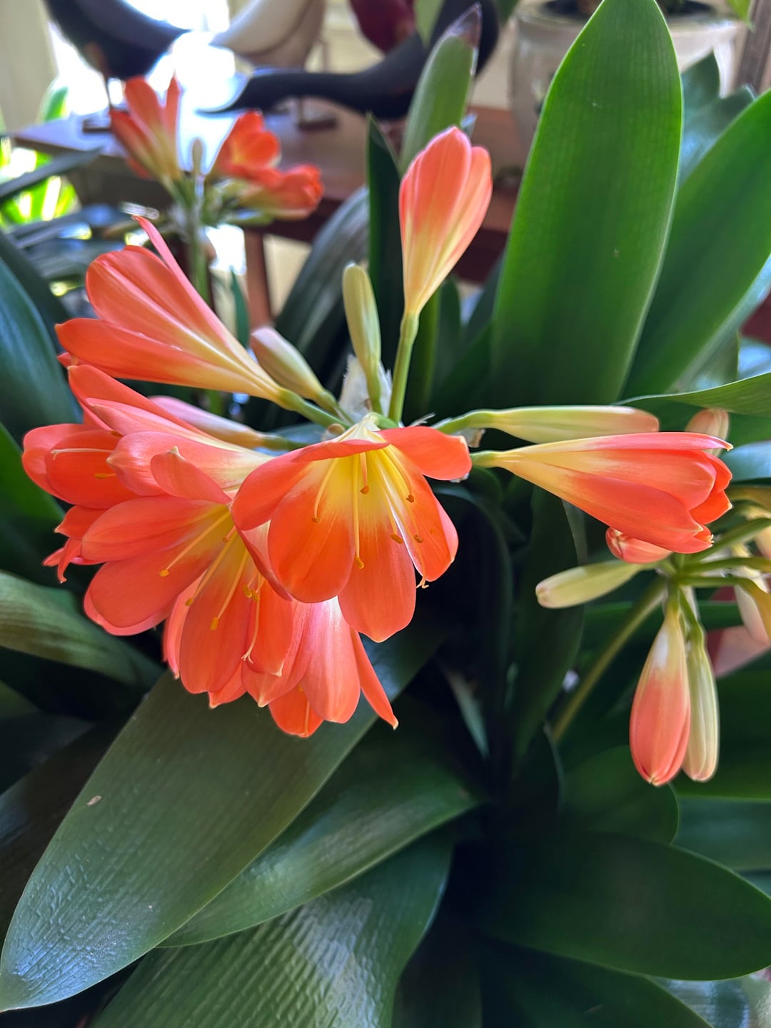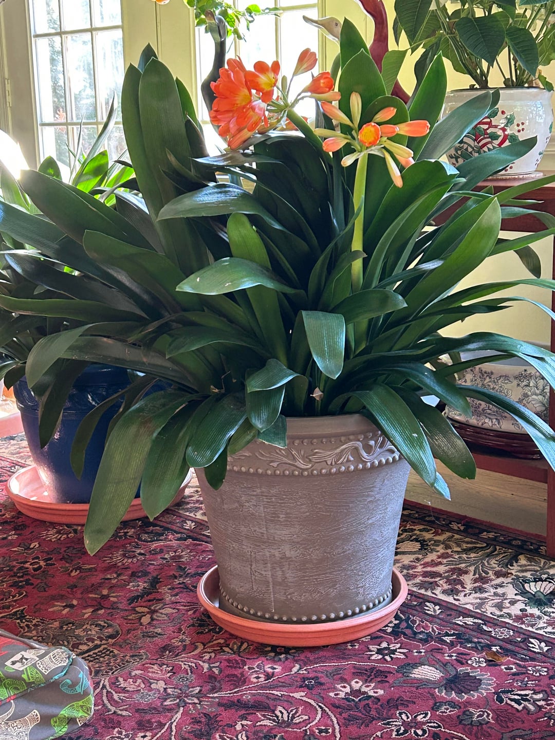 巨大なクリビアを5つ持っています。最初に開花し、数週間後に次の開花が始まります。数ヶ月間開花できるように、数週間の間隔をあけて植えるようにしています。 40年前、私は年配の女性が何十年もコレクションしていた植物の扇子を譲り受けました。それ以来、何度も株分けをしましたが、今では大きな株として育てています。残念ながら、ほとんどの人は花を咲かせるための手順に取り組みたくありません。