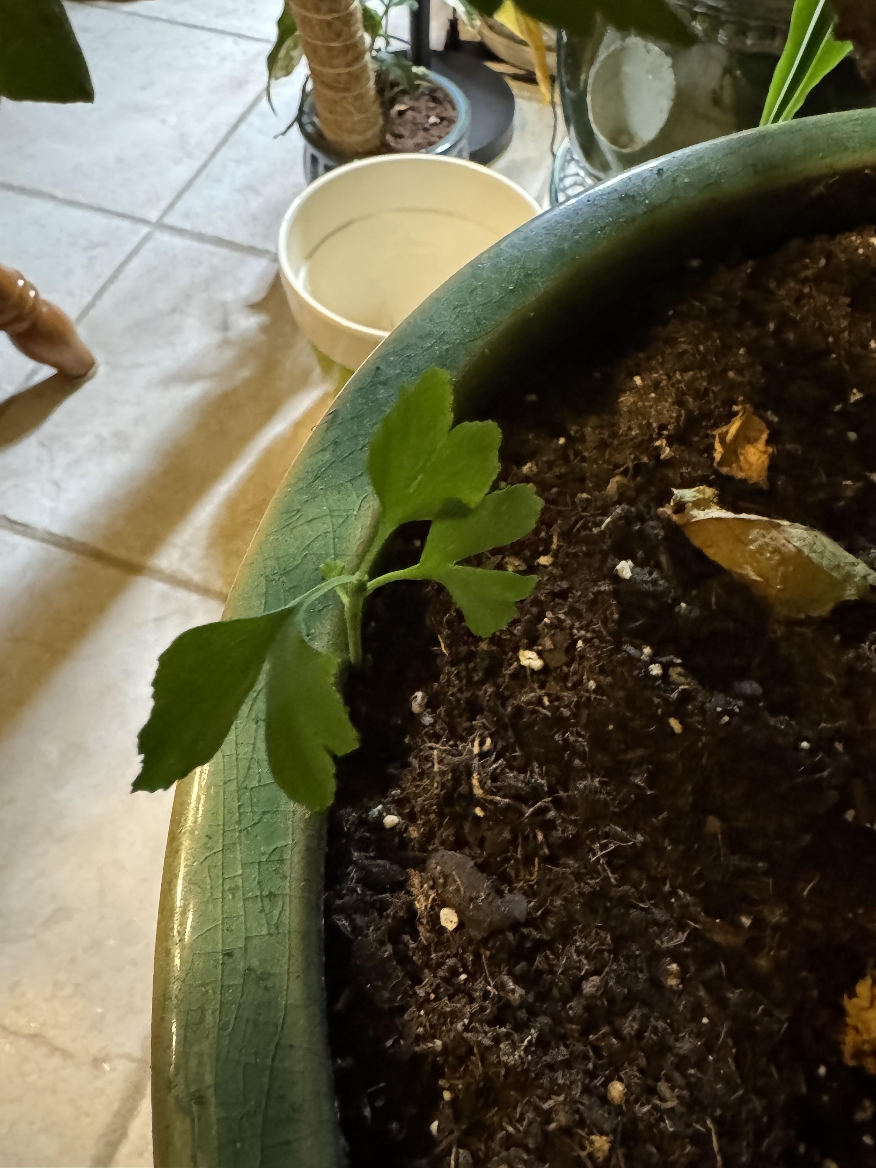 ハイビスカスに謎の植物が芽生えたのですが、これは何ですか?