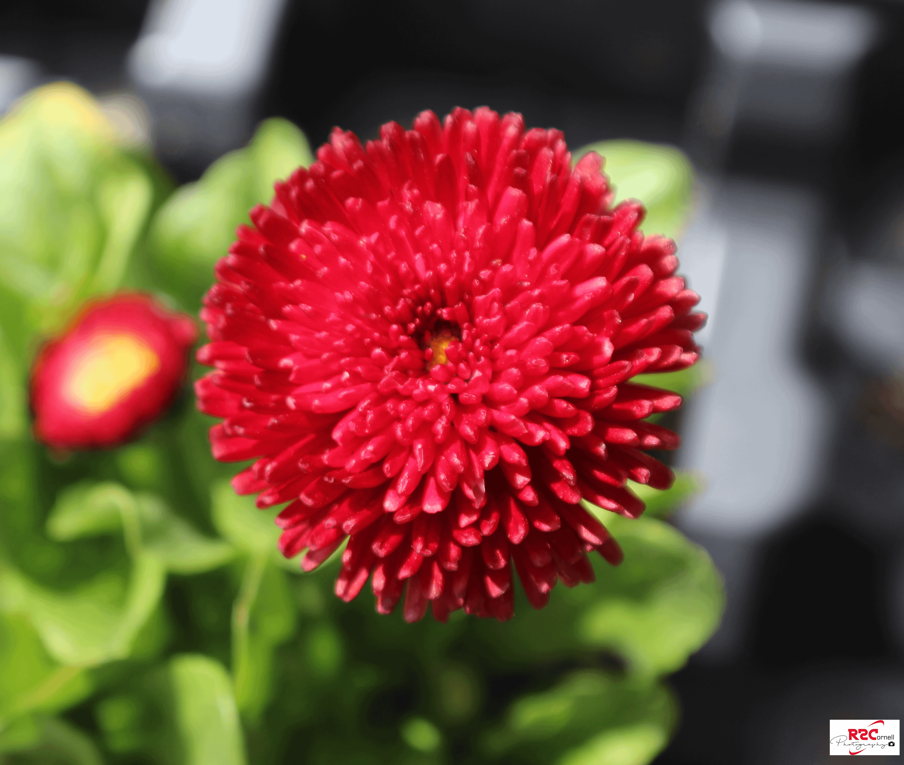 赤いイングリッシュデイジー。 (ベリス・ペレニス)