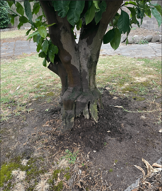 根の半分は完全に露出しており、進行中の(胆汁蜂?)感染症にもかかっています。ツリーは保存可能ですか?もしそうならどうすればいいですか