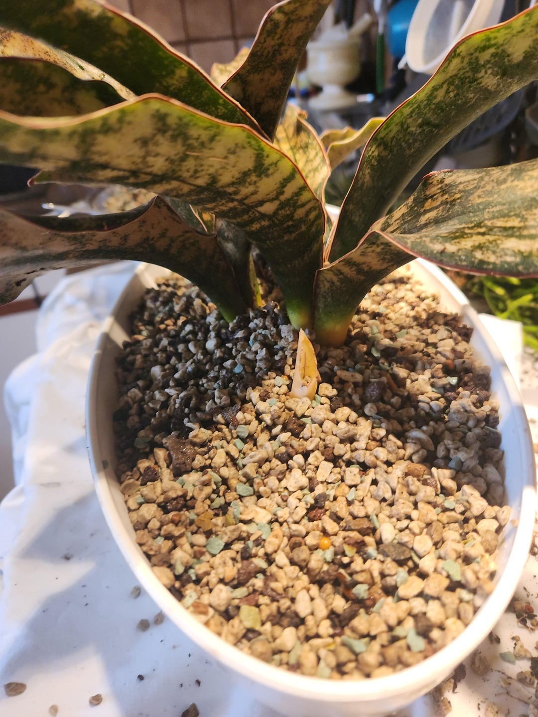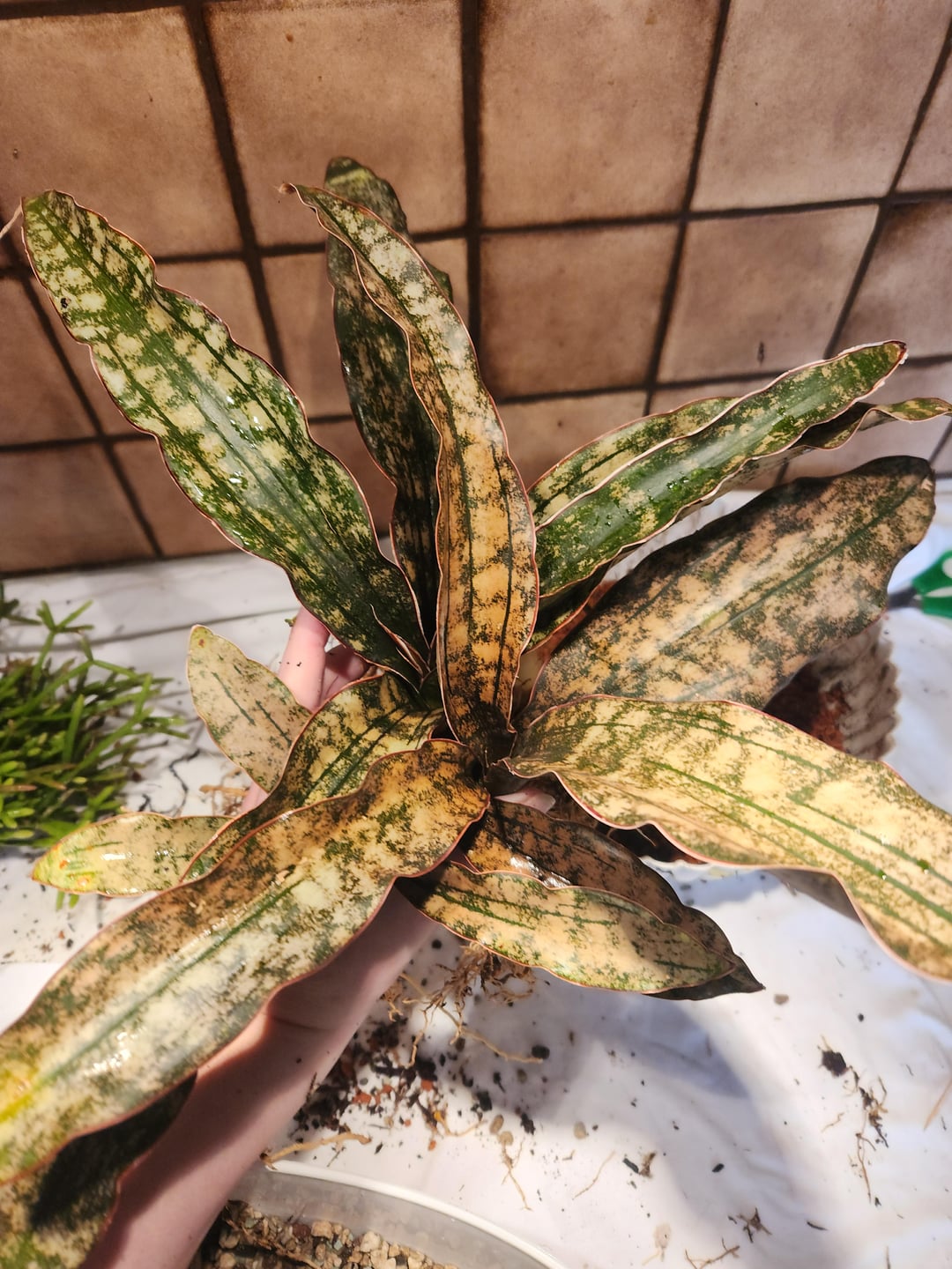 こんにちは、これが私の新しい美しいサンスベリアです。他の2株と一緒に鉢に植えてあったので、家で分けて根を綺麗にしてポンに植えました。今、私は別の植物になると思うこの場所を見つけました。この場所は裸のままにしてもいいですか、それとも覆う必要がありますか? 残念ながら小さな葉が折れてしまいました。 root化する最も簡単な方法は何ですか?水に入れておけばいいのでしょうか?