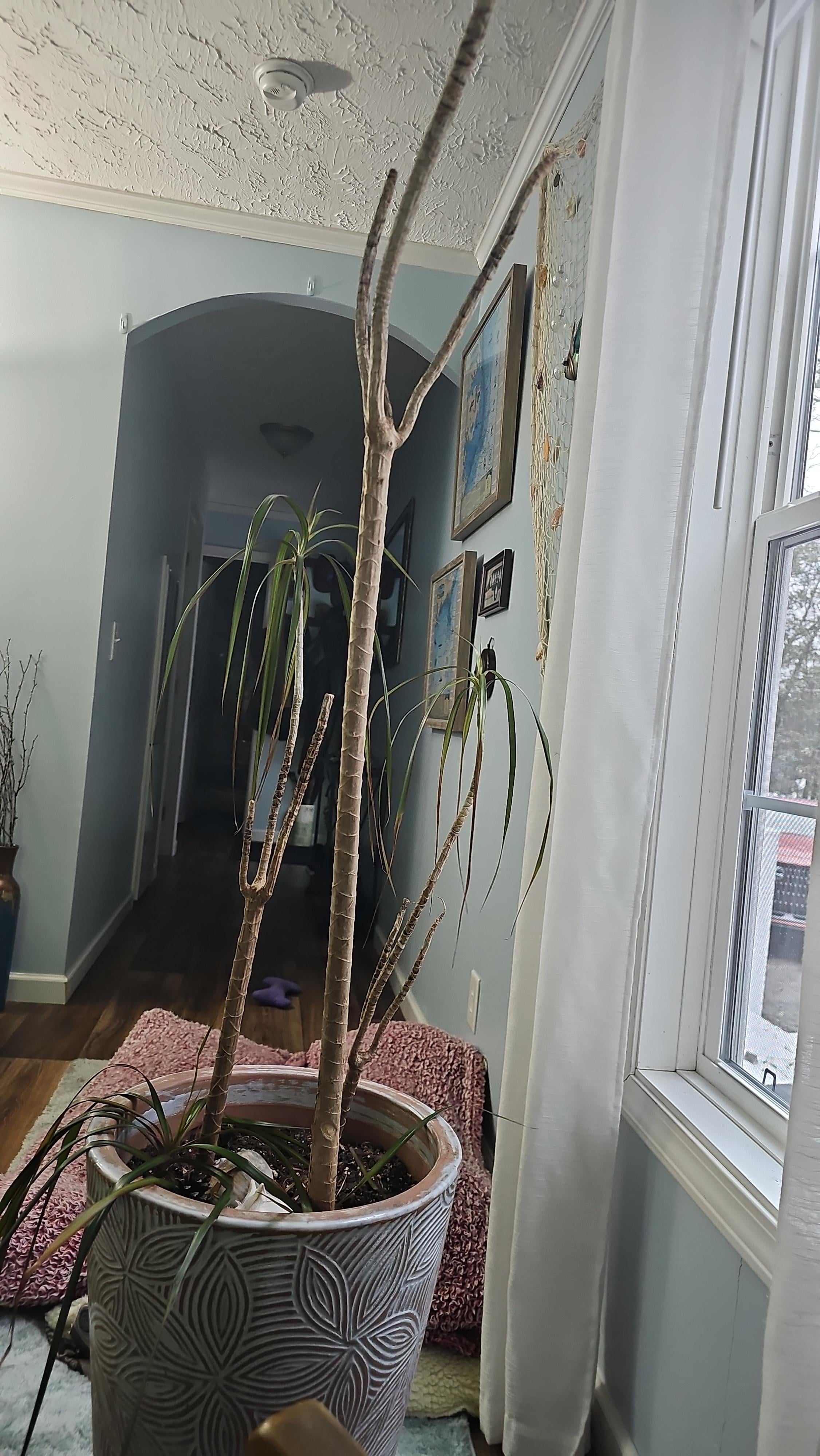 私の妹はノースカロライナ州のエメラルド島に住んでいます。これを手に入れて窓に置いたのを見てください。上の枝が数本曲がってしまいました。彼女は曲がった枝を繁殖させようとしています。緑がないので高い枝も切り落としたほうがいいでしょうか?緑があるものから栄養を吸い取っているのでしょうか?ご協力をよろしくお願いいたします。